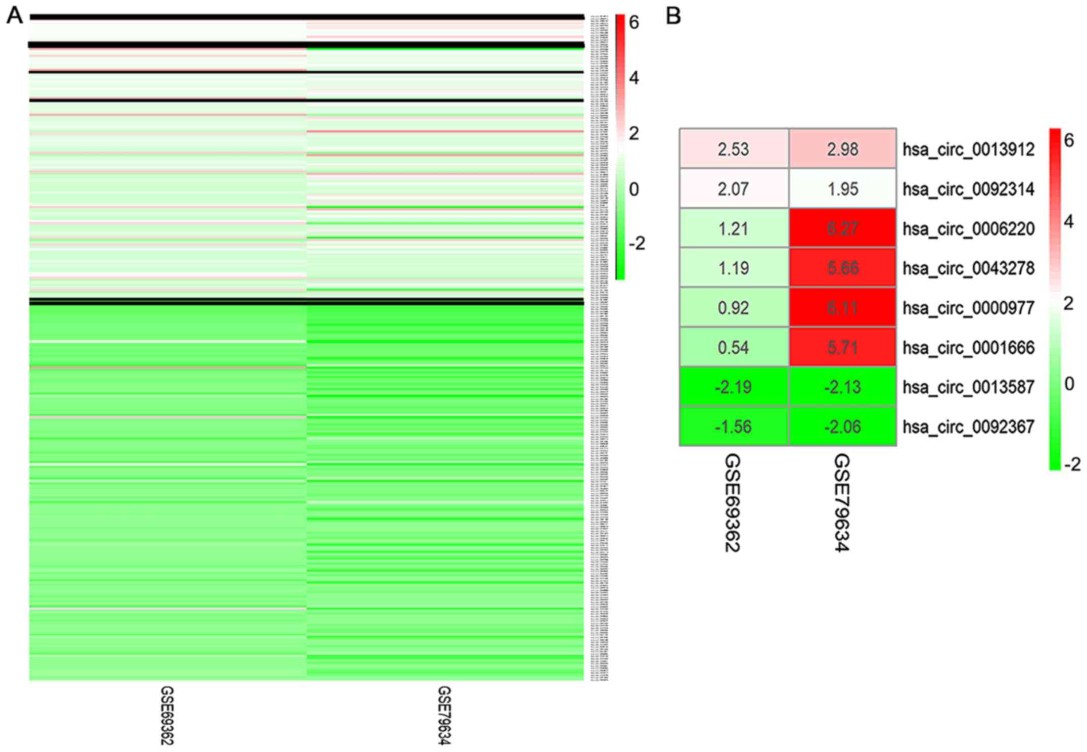 Jeck WR, Sorrentino JA, Wang K, Slevin MK, Burd CE, Liu J, Marzluff WF and Sharpless NE: Circular RNAs are abundant, conserved, and associated with ALU repeats. RNA. 19:141–157. 2013. View Article : Google Scholar : PubMed/NCBI