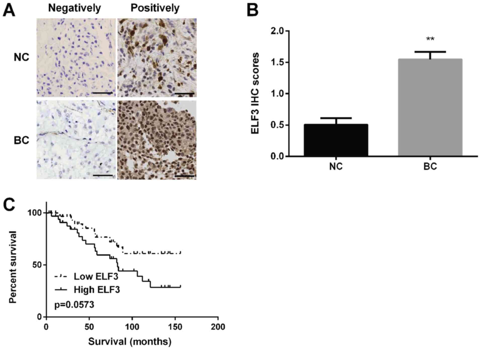 Wang H, Yu Z, Huo S, Chen Z, Ou Z, Mai J, Ding S and Zhang J: Overexpression of ELF3 facilitates cell growth and metastasis through PI3K/Akt and ERK signaling pathways in non-small cell lung cancer. Int J Biochem Cell Biol. 94:98–106. 2018. View Article : Google Scholar : PubMed/NCBI
