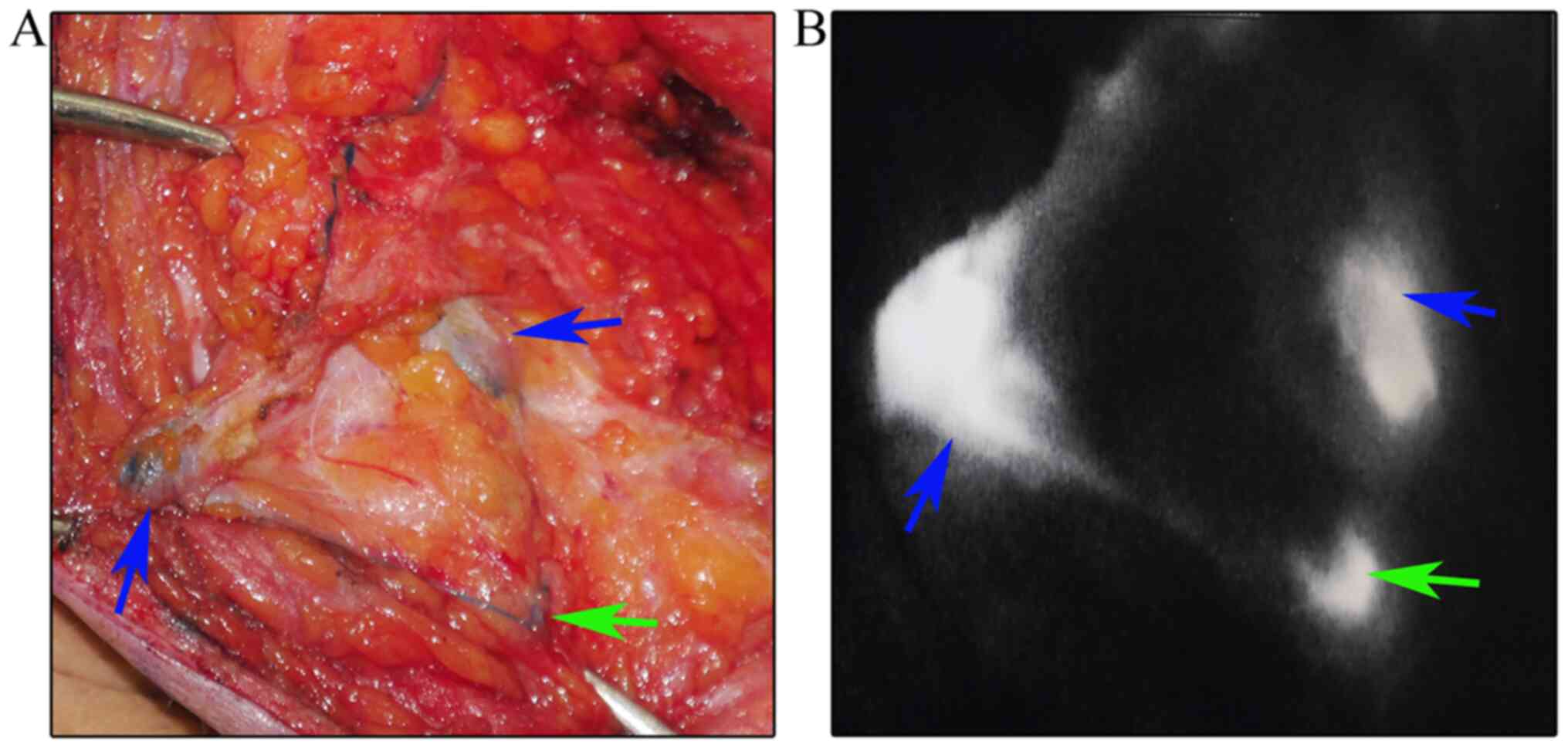 Tong M, Guo W and Gao W: Use of fluorescence imaging in combination with patent blue dye versus patent blue dye alone in sentinel lymph node biopsy in breast cancer. J Breast Cancer. 17:250–255. 2014. View Article : Google Scholar : PubMed/NCBI | |