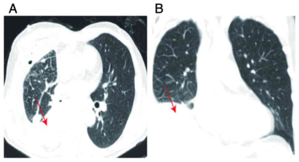 One case report. J Thorac Dis. 10:pp. 4484–4486. 2018, View Article : Google Scholar : PubMed/NCBI