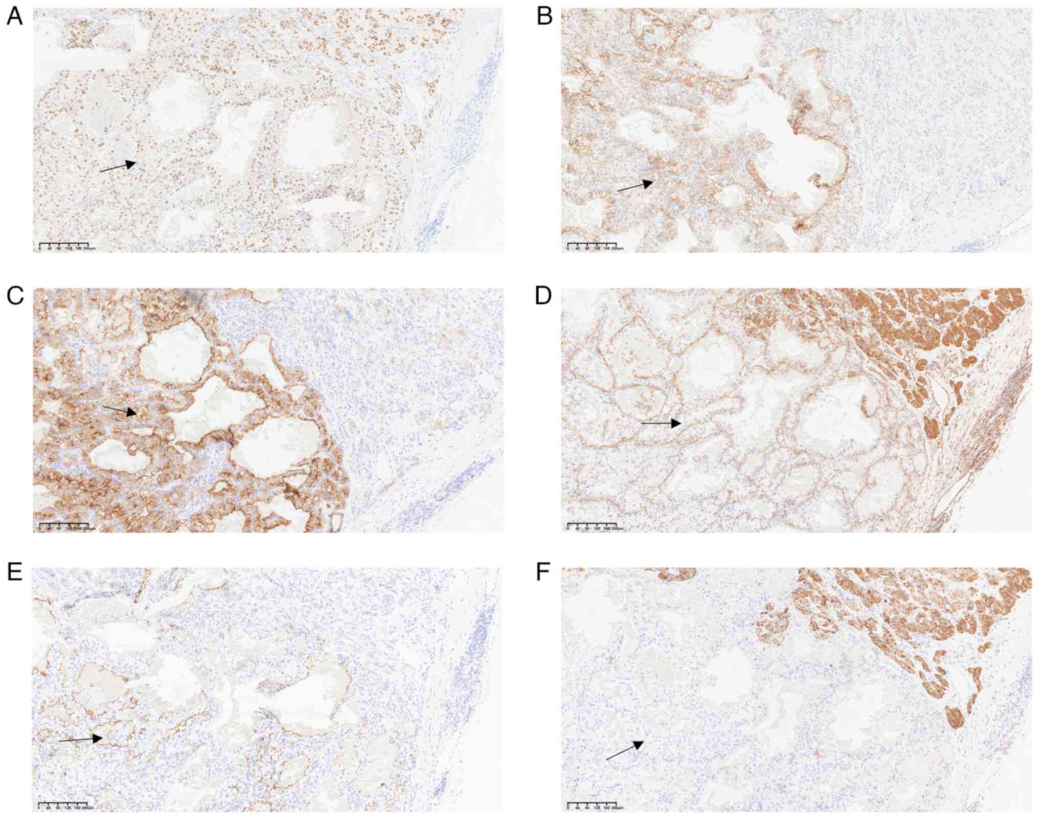 Mahmut A and Sean RW: Immunohistochemistry for the diagnosis of renal epithelial neoplasms. Semin Diagn Pathol. 39:1–16. 2022. View Article : Google Scholar : PubMed/NCBI | |