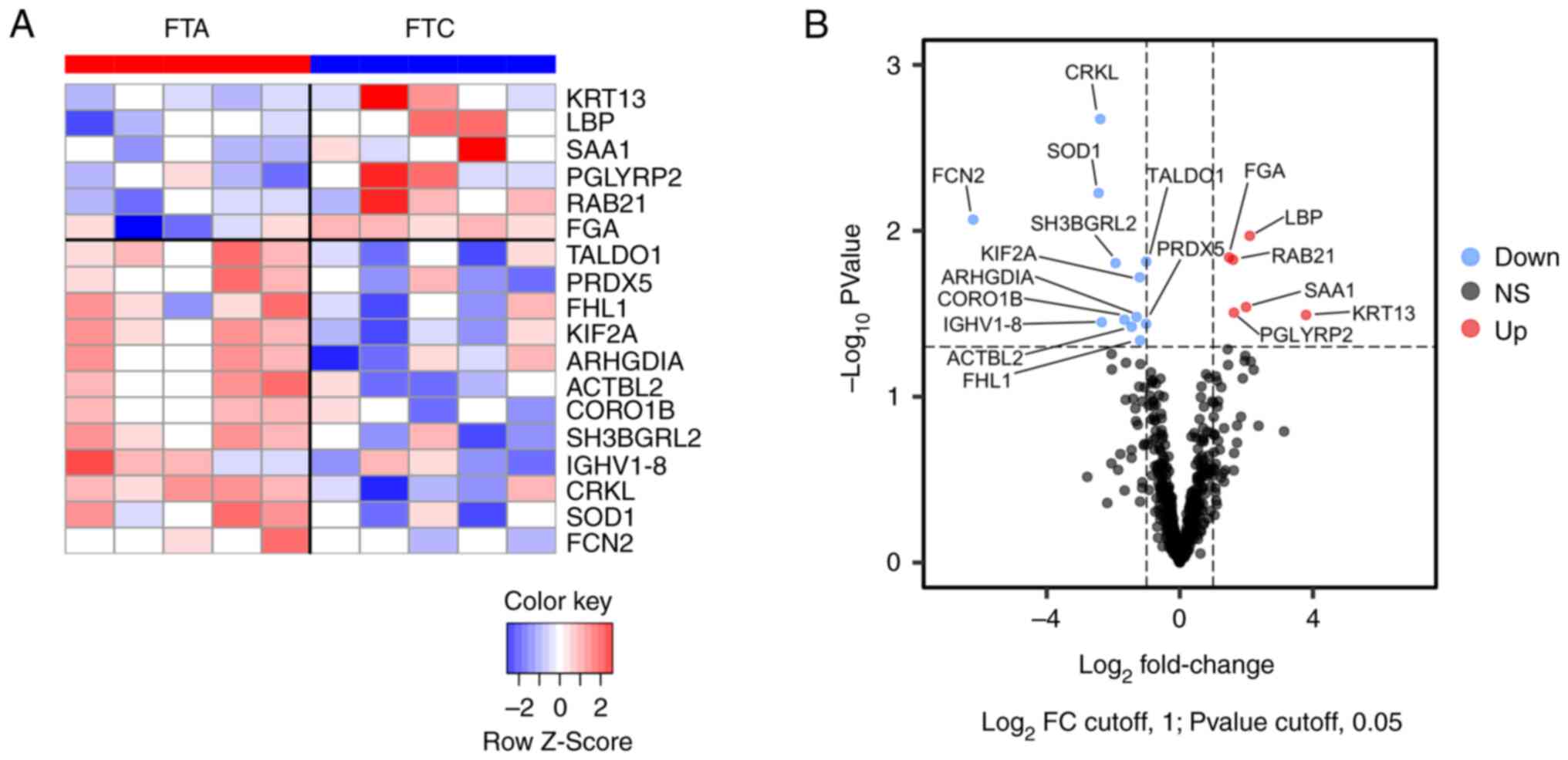 Table I.Up- and downregulated proteins in serum EVs of FTC patients isolated using PS affinity method. |