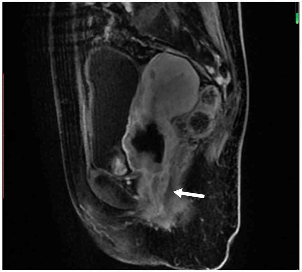 The diagnostic performance of MRI (comprising sensitivity, specificity and accuracy) in detecting pelvic LNM, parametrial invasion and vaginal involvement was assessed. Sensitivity was calculated as the proportion of true-positive cases relative to the sum of true-positive and false-negative cases, multiplied by 100. Specificity was determined as the proportion of true-negative cases relative to the sum of true-negative and false-positive cases, multiplied by 100. Accuracy was defined as the proportion of true-positive and true-negative cases relative to the total number of cases, multiplied by 100.