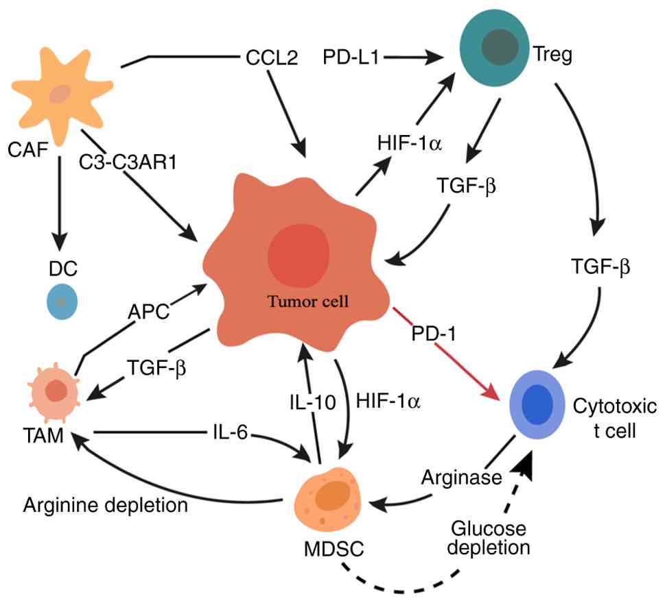 He S, Zheng L and Qi C: Myeloid-derived suppressor cells (MDSCs) in the tumor microenvironment and their targeting in cancer therapy. Mol Cancer. 24:52025. View Article : Google Scholar : PubMed/NCBI | |