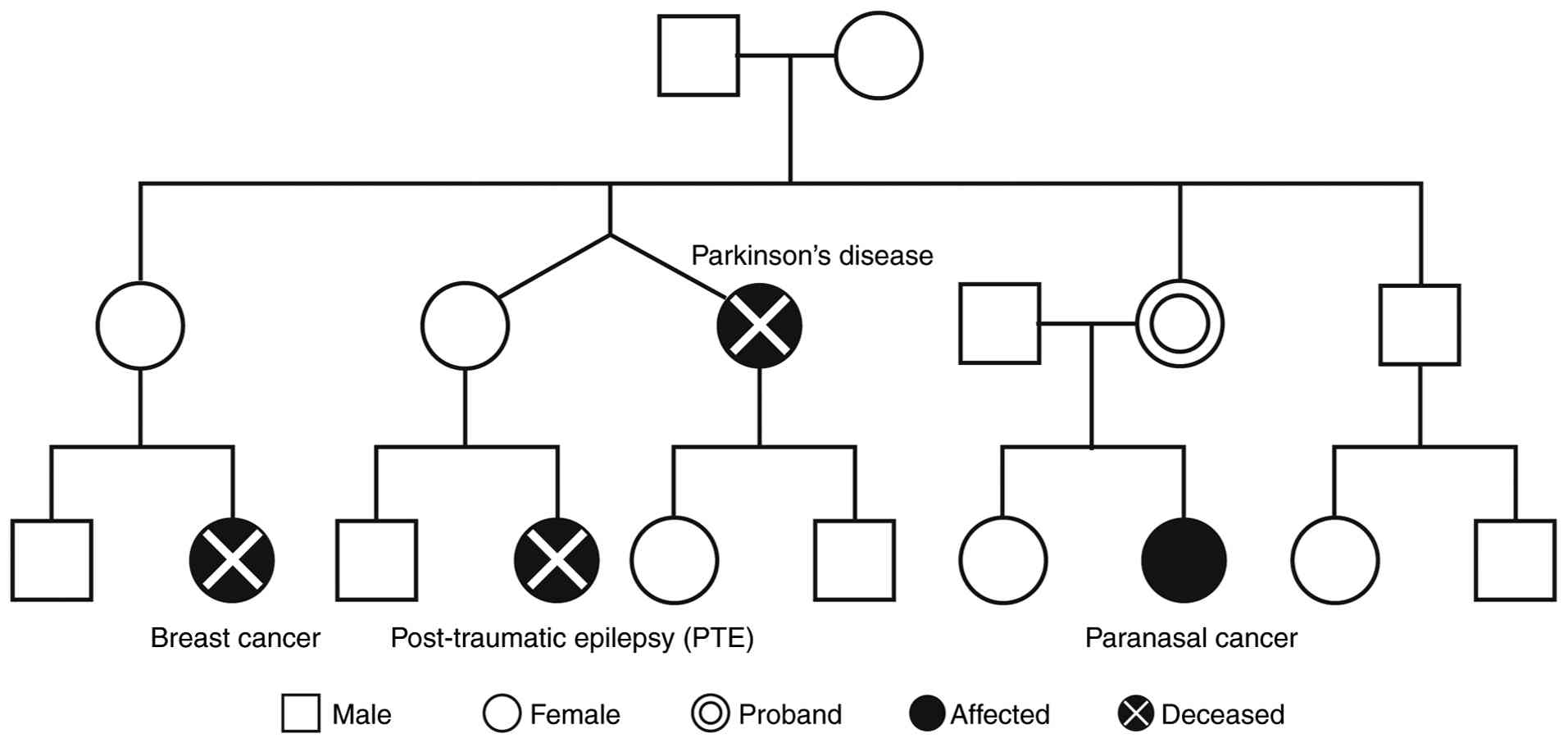 In the present case, MSI testing was performed due to the lack of alternative treatment options, and tumor was confirmed to be MSI-H. MSI-H TCs can be associated with Lynch syndrome (12,13), and although the finding of MSI-H in the present case suggested the possibility of Lynch syndrome, the family history of the patient, summarized in Fig. 6, did not meet the revised Bethesda or modified Amsterdam criteria (22,23). Although comprehensive genomic profiling was not available, germline testing for mismatch repair gene mutations was separately recommended to confirm the diagnosis; however, the patient declined this genetic testing. As a result, a definitive diagnosis of Lynch syndrome could not be established in the present case.