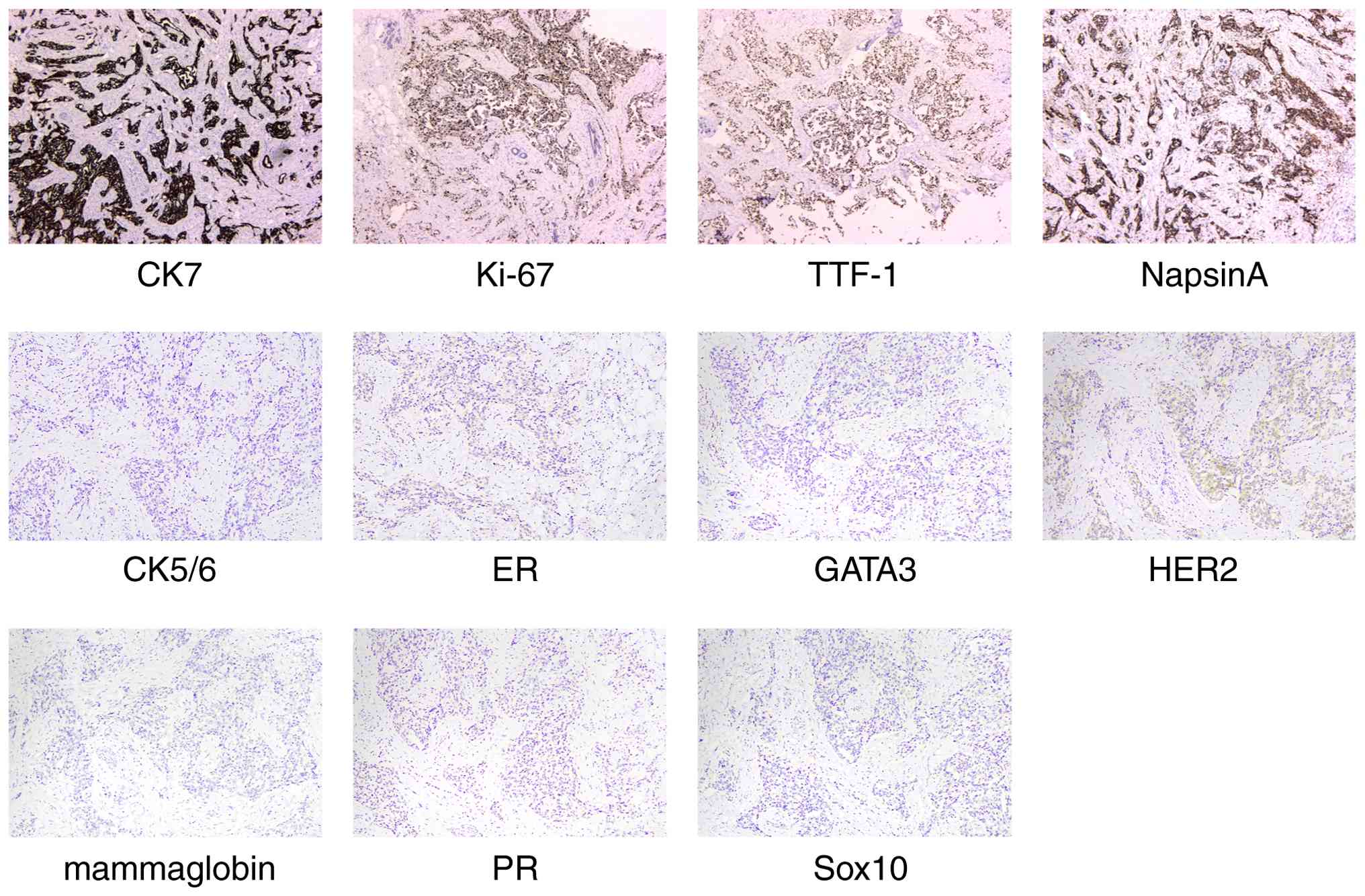 Klingen TA, Chen Y, Gundersen MD, Aas H, Westre B and Sauer T: Thyroid transcription factor-1 positive primary breast cancer: A case report with review of the literature. Diagn Pathol. 5:372010. View Article : Google Scholar : PubMed/NCBI | |