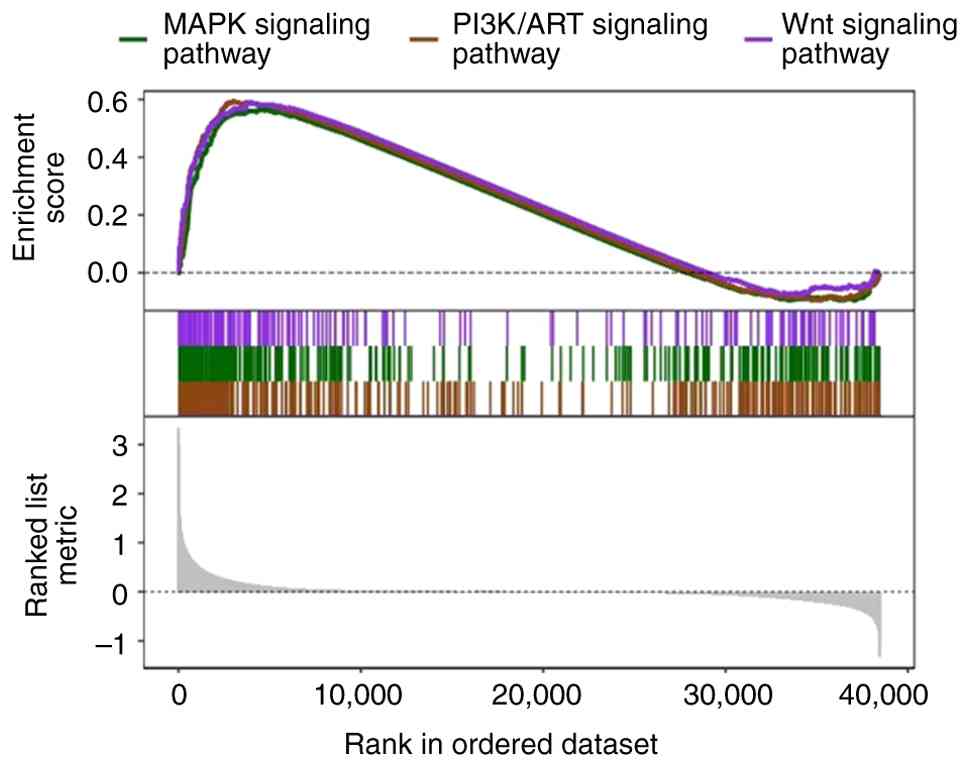 Subramanian AT, Tamayo P, Mootha VK, Mukherjee S, Ebert BL, Gillette MA, Paulovich A, Pomeroy SL, Golub TR, Lander ES and Mesirov JP: Gene set enrichment analysis: A knowledge-based approach for interpreting genome-wide expression profiles. Proc Natl Acad Sci USA. 102:15545–15550. 2005. View Article : Google Scholar : PubMed/NCBI |
