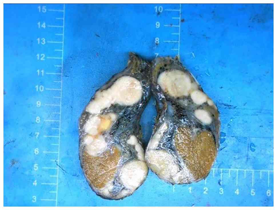 Gupta NP and Kumar R: Malignant gonadal mesothelioma. Curr Treat Options Oncol. 3:363–367. 2002. View Article : Google Scholar : PubMed/NCBI | |
