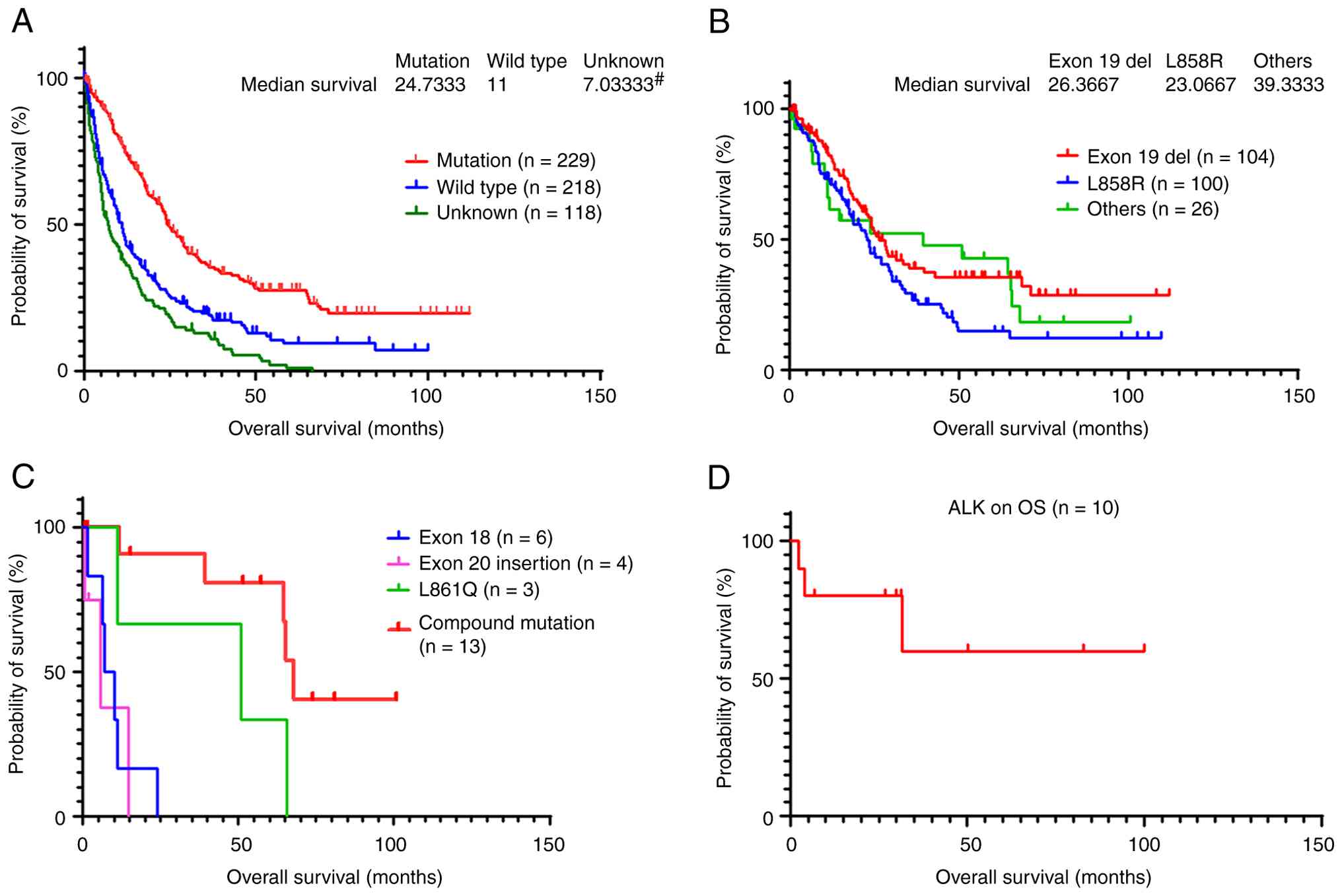 Shimamura SS, Shukuya T, Asao T, Hayakawa D, Kurokawa K, Xu S, Miura K, Mitsuishi Y, Tajima K, Shibayama R, et al: Survival past five years with advanced, EGFR-mutated or ALK-rearranged non-small cell lung cancer-is there a ‘tail plateau’ in the survival curve of these patients? BMC Cancer. 22:3232022. View Article : Google Scholar : PubMed/NCBI | |
