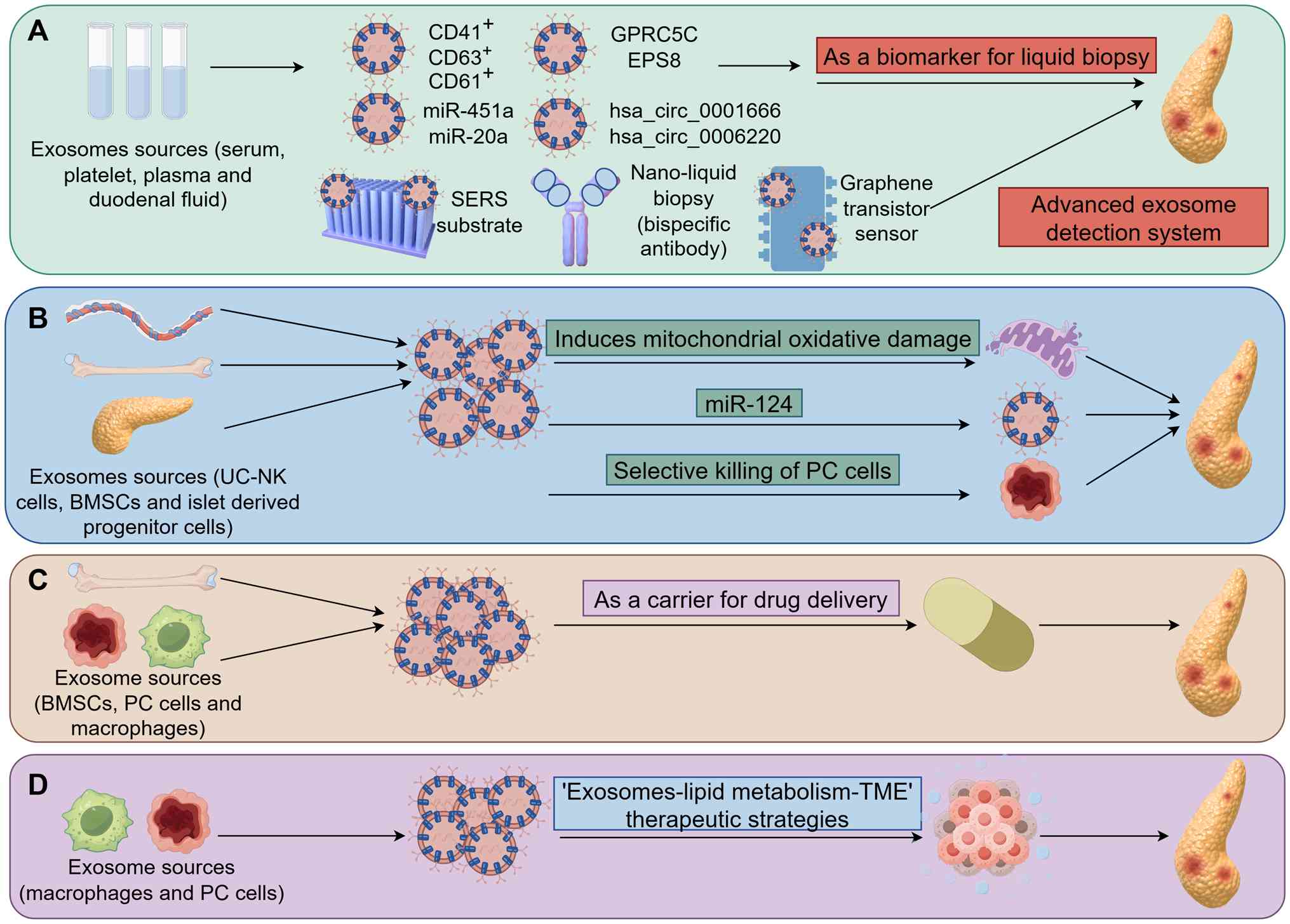 In summary, exosomes hold notable potential as a therapeutic strategy for PC. Future research should focus on further understanding of their functional mechanisms, optimizing their isolation and extraction techniques and facilitating their clinical translation, with the potential goal of offering novel treatment options for patients with PC in the clinic at the earliest opportunity.