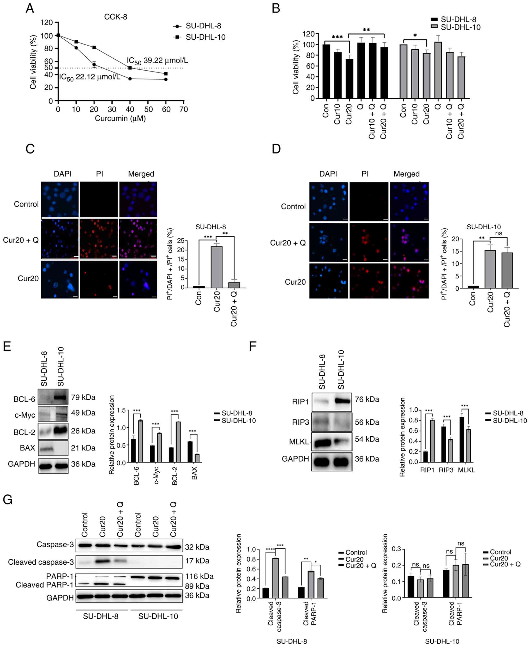 The human DLBCL cell lines SU-DHL-4, SU-DHL-6, SU-DHL-8, SU-DHL-10 and DoHH2 were provided by Professor Fengting Liu. Curcumin and Q-VD-OPh were obtained from MedChemExpress and olaparib was acquired from Selleck Chemicals.