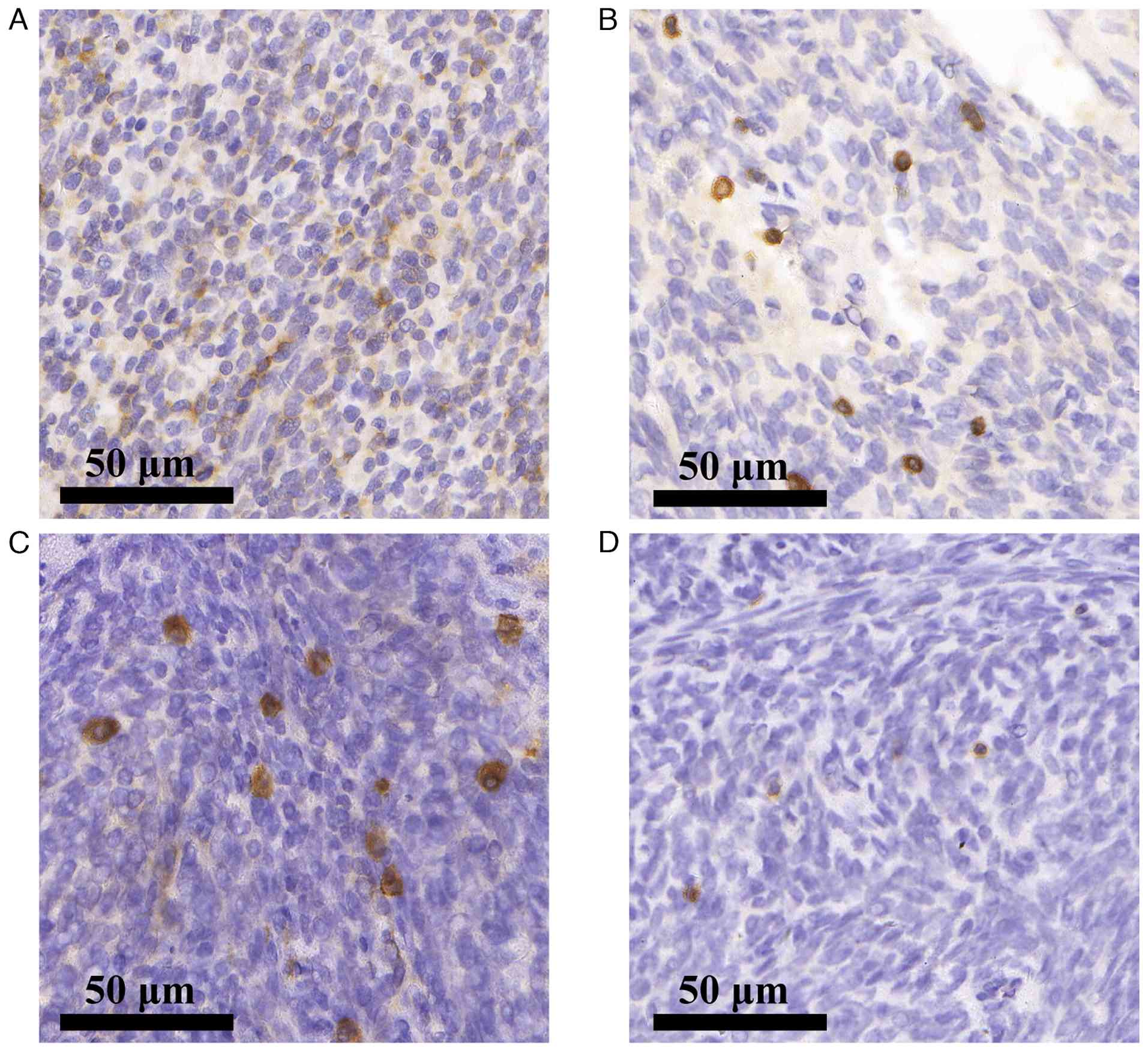 Nowicki TS, Akiyama R, Huang RR, Shintaku IP, Wang X, Tumeh PC, Singh A, Chmielowski B, Denny C, Federman N and Ribas A: Infiltration of CD8 T cells and expression of PD-1 and PD-L1 in synovial sarcoma. Cancer Immunol Res. 5:118–126. 2017. View Article : Google Scholar : PubMed/NCBI | |