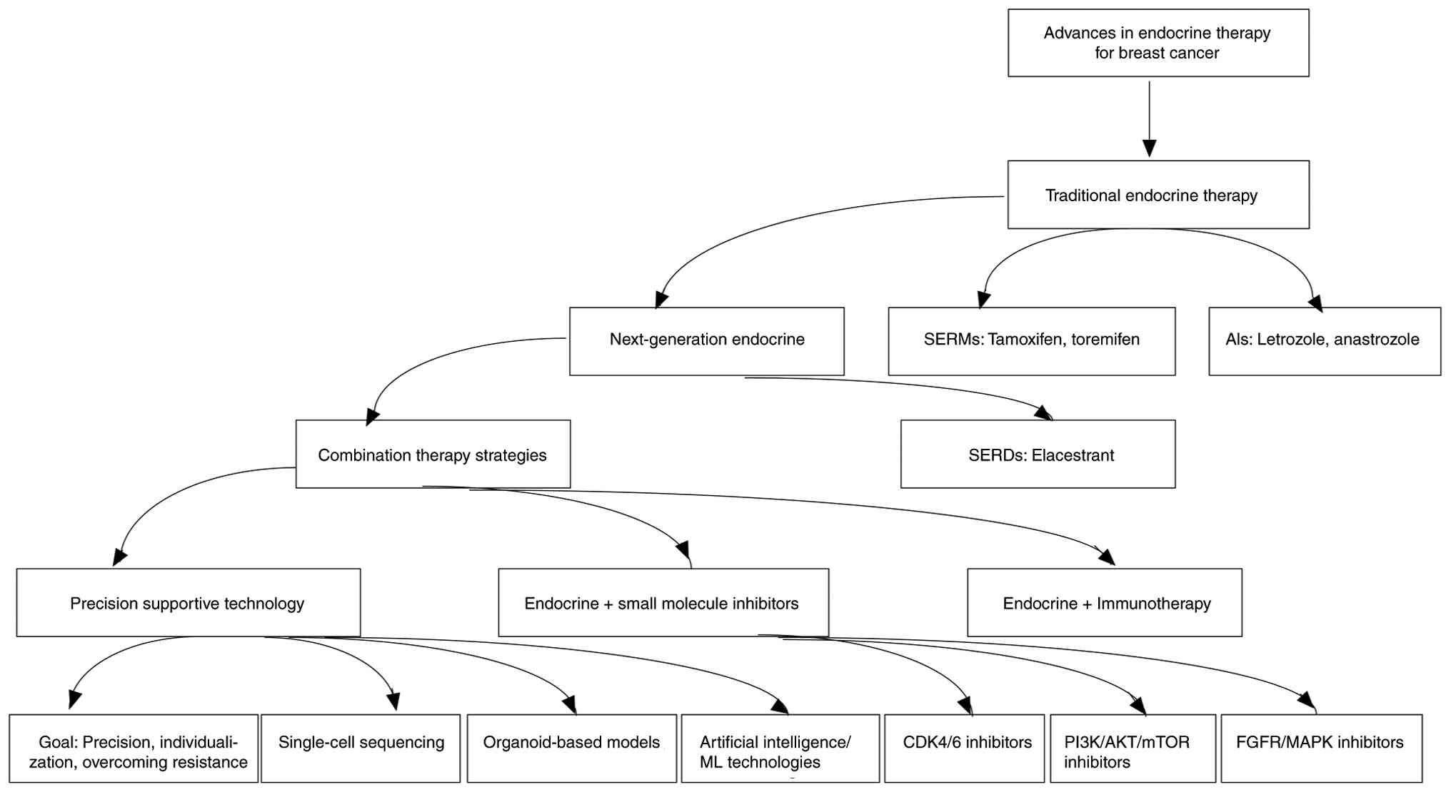 Due to the central role of ER signaling in HR+ breast cancer and the evolving therapeutic landscape aimed at overcoming endocrine resistance, a schematic overview summarizing the major milestones and emerging strategies in endocrine therapy is presented in Fig. 1. This illustration provides a structured framework for understanding the transition from traditional endocrine agents to next-generation therapies, combination regimens and precision-supportive technologies discussed in the following sections.