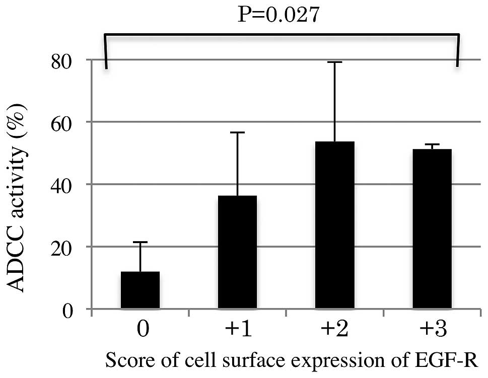 Kurai J, Chikumi H, Hashimoto K, et al: Antibody-dependent cellular cytotoxicity mediated by cetuximab against lung cancer cell lines. Clin Cancer Res. 13:1552–1561. 2007. View Article : Google Scholar : PubMed/NCBI | |