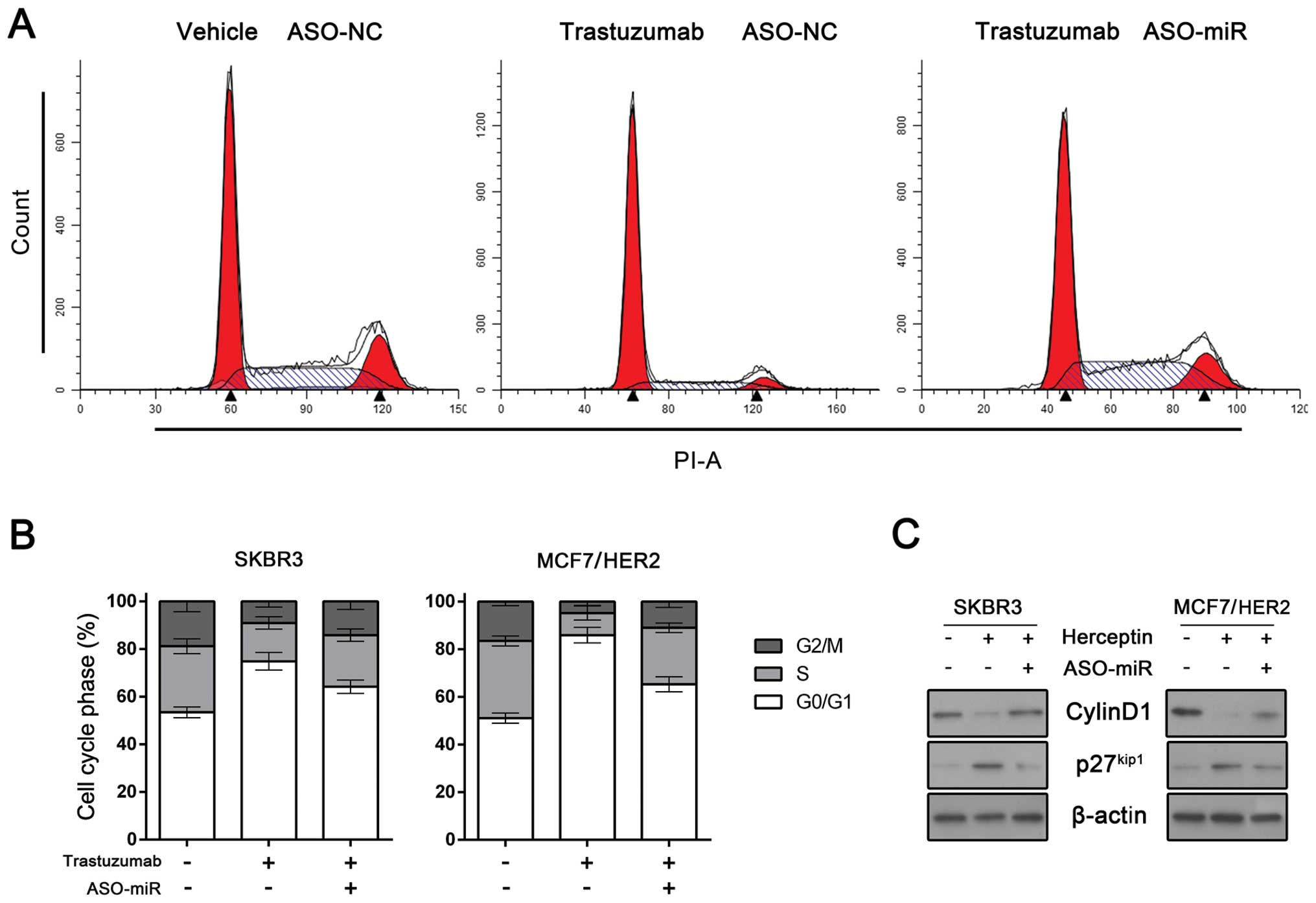 The results describe a new mechanism by which breast cancer acquires trastuzumab resistance. We found that miRNA-542-3p was upregulated in breast cancer cell lines when treated with trastuzumab. Of note, when miRNA-542-3p was silenced breast cancer cells showed resistance to trastuzumab. Trastuzumab-induced proliferation and cell cycle arrest were rescued. The apoptotic rate was also downregulated when miRNA-542-3p was silenced. Furthermore, miRNA-542-3p silencing activated PI3K-AKT pathway in breast cancer cells. The inhibition of this pathway restored trastuzumab sensitivity. Taken together, these findings demonstrate that miRNA-542-3p plays an important role in trastuzumab anticancer function.