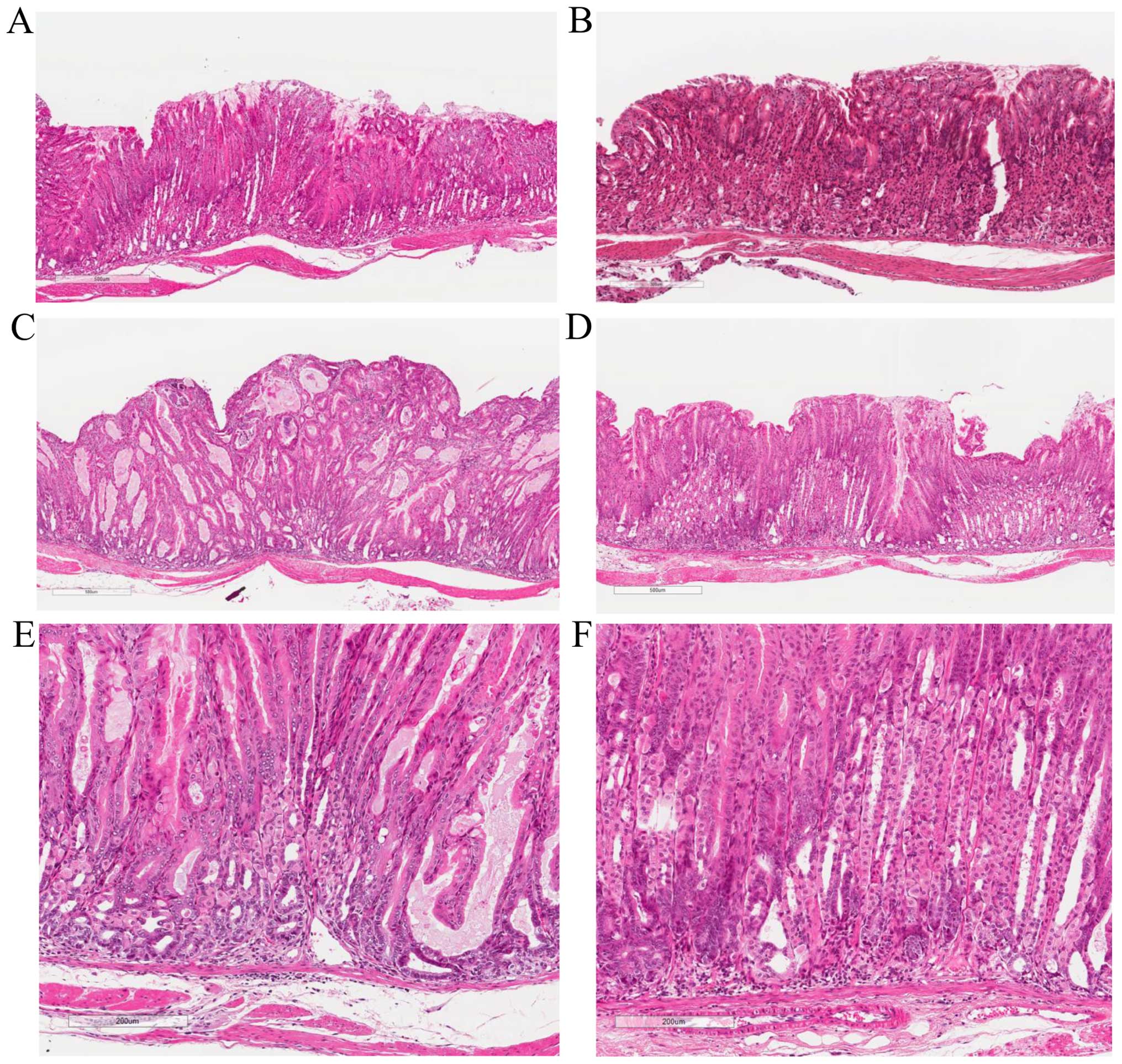 Rogers AB, Taylor NS, Whary MT, Stefanich ED, Wang TC and Fox JG: Helicobacter pylori but not high salt induces gastric intraepithelial neoplasia in B6129 mice. Cancer Res. 65:10709–10715. 2005. View Article : Google Scholar : PubMed/NCBI | |