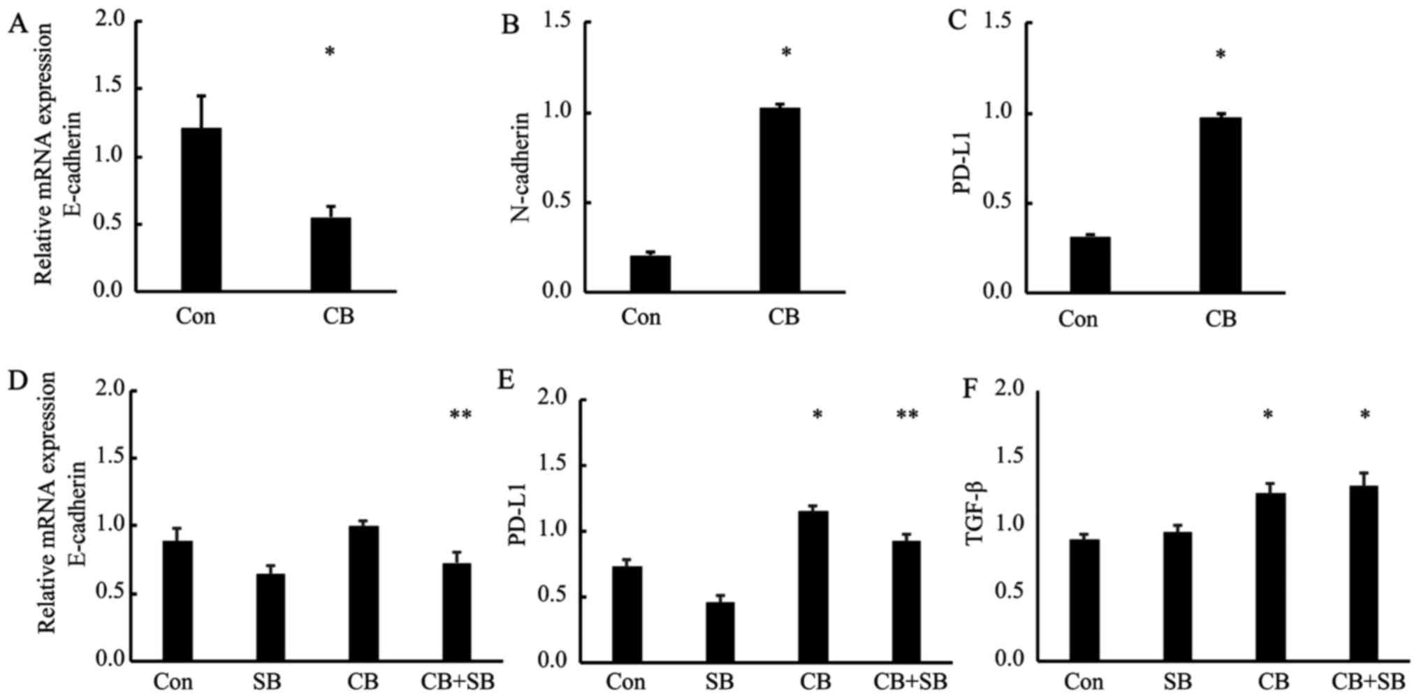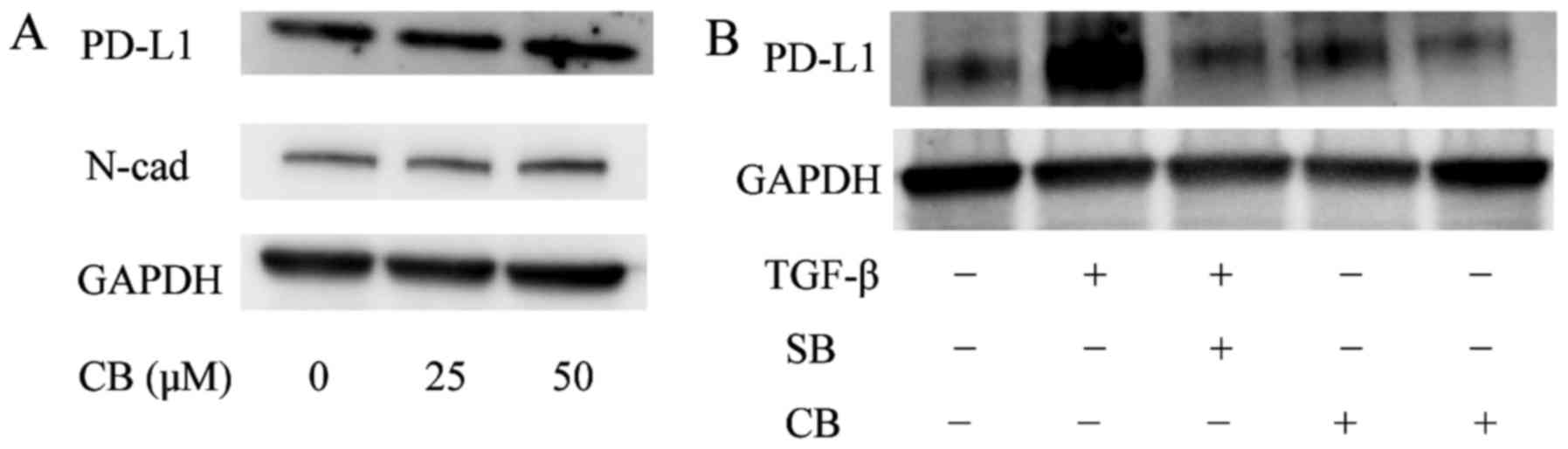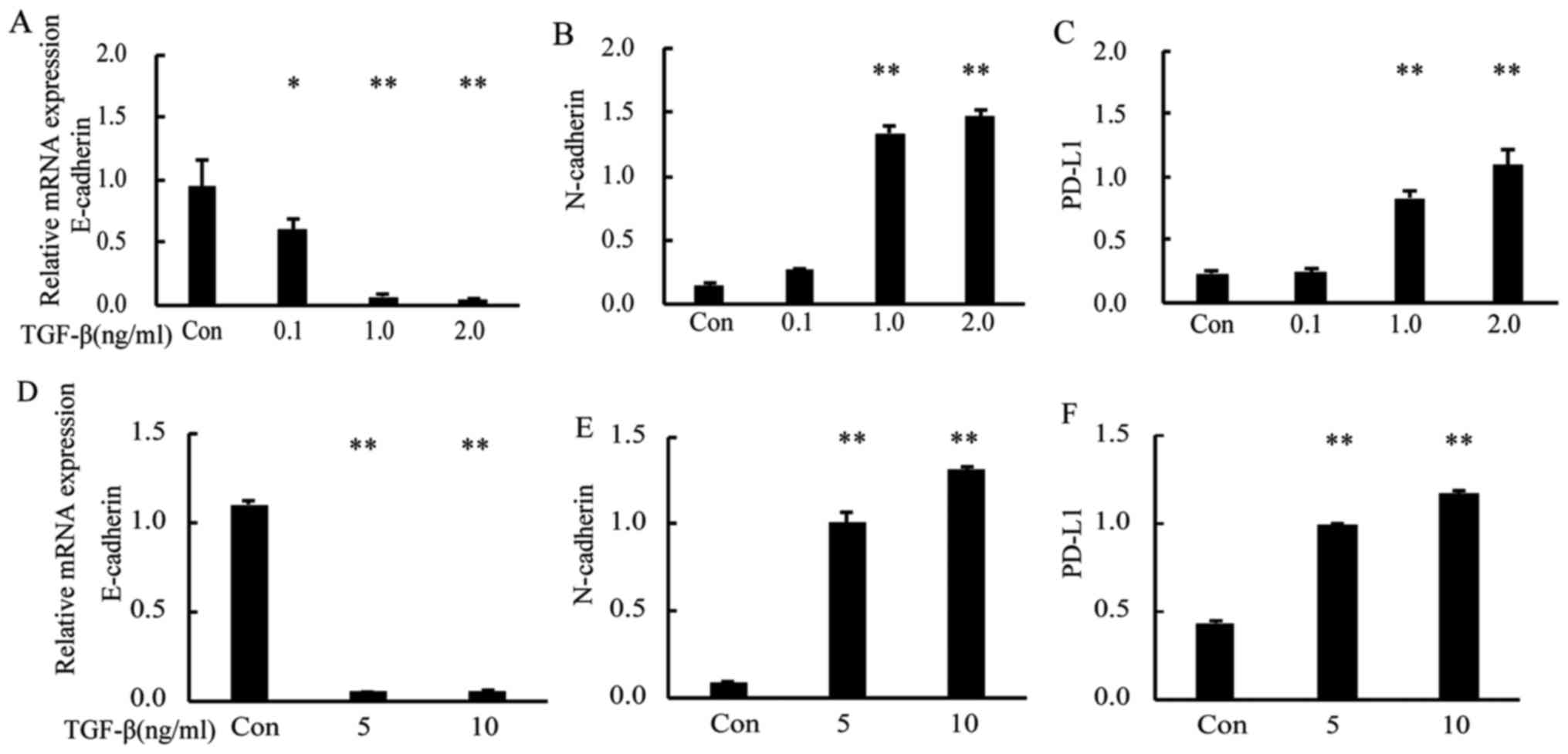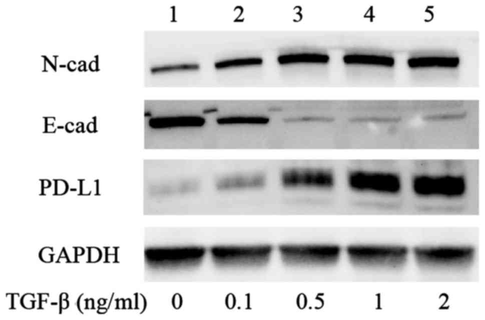 Funaki S, Shintani Y, Kawamura T, Kanzaki R, Minami M and Okumura M: Chemotherapy enhances programmed cell death 1/ligand 1 expression via TGF-β induced epithelial mesenchymal transition in non-small cell lung cancer. Oncol Rep 38: 2277-2284, 2017.