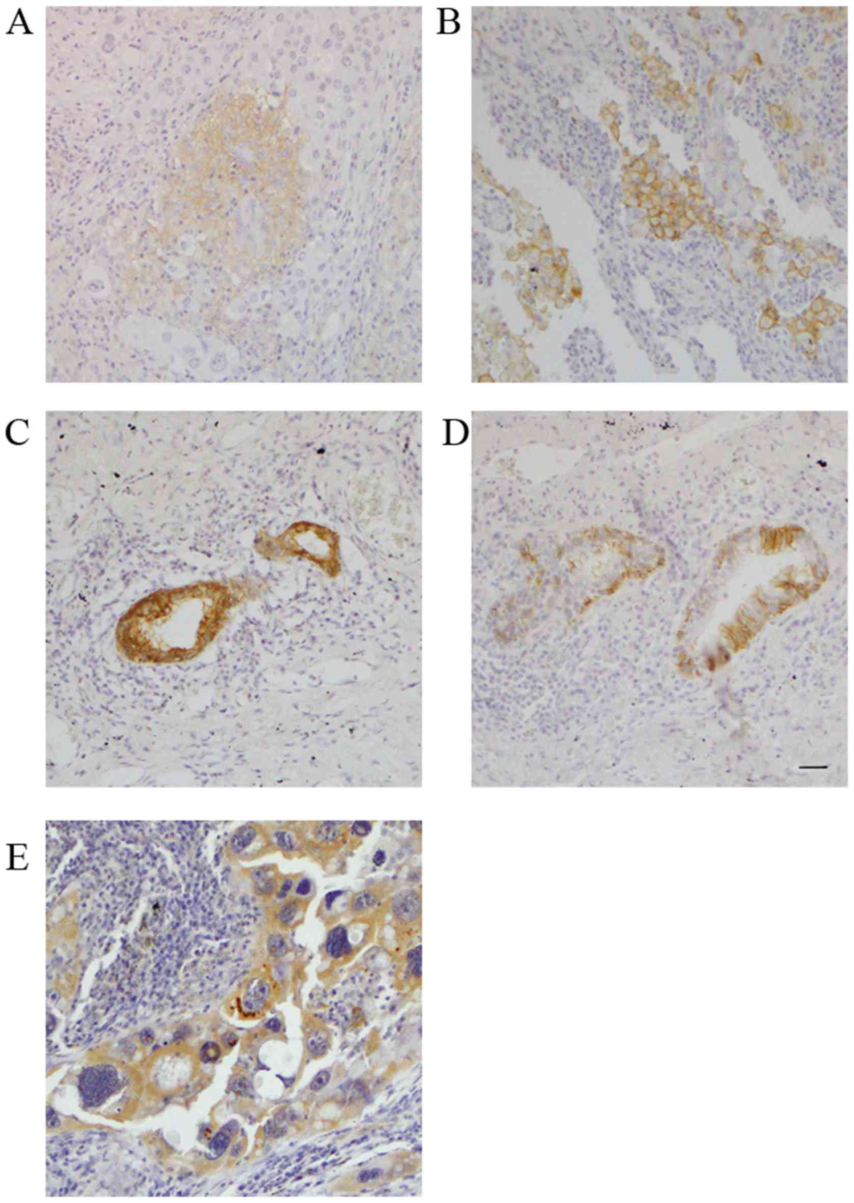 Schats KA, Van Vré EA, De Schepper S, Boeckx C, Schrijvers DM, Waelput W, Fransen E, Vanden Bempt I, Neyns B, De Meester I, et al: Validated programmed cell death ligand 1 immunohistochemistry assays (E1L3N and SP142) reveal similar immune cell staining patterns in melanoma when using the same sensitive detection system. Histopathology. 70:253–263. 2017. View Article : Google Scholar : PubMed/NCBI