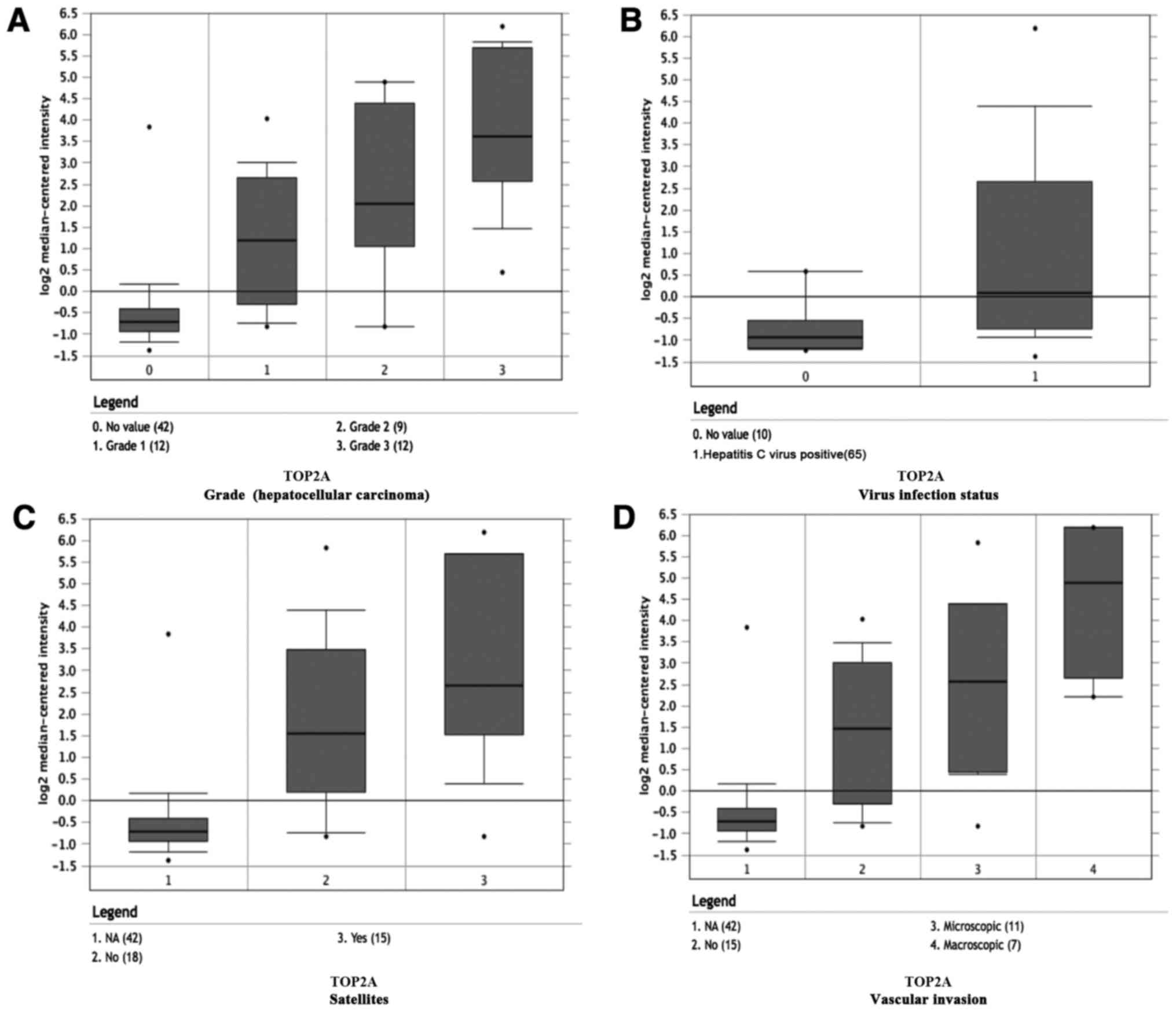 Panvichian R, Tantiwetrueangdet A, Angkathunyakul N and Leelaudomlipi S: TOP2A amplification and overexpression in hepatocellular carcinoma tissues. Biomed Res Int. 2015:3816022015. View Article : Google Scholar : PubMed/NCBI | |