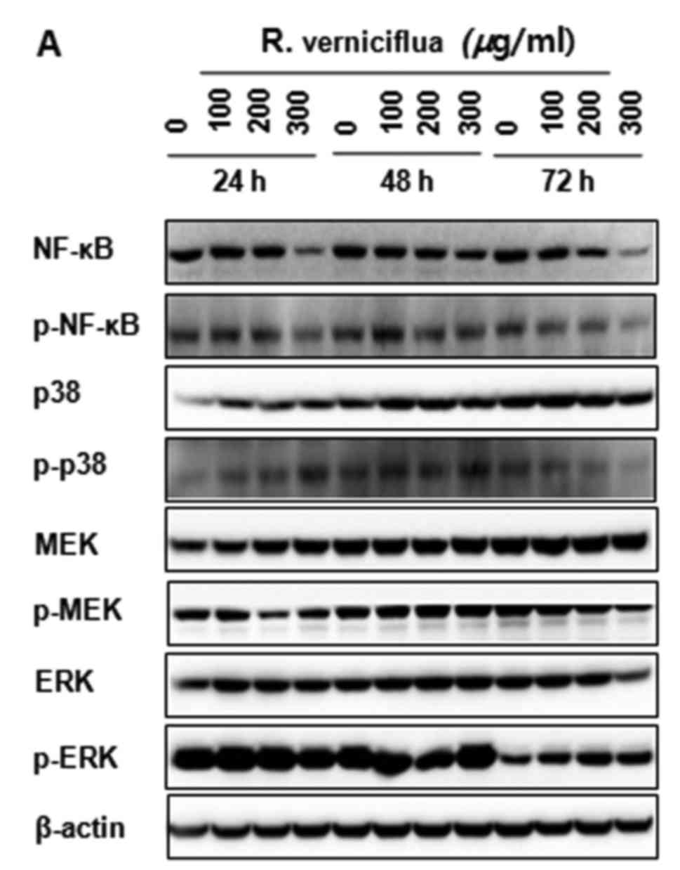 caspases, inhibition of NF-κB and activation of MAPKs. Int J Oncol.