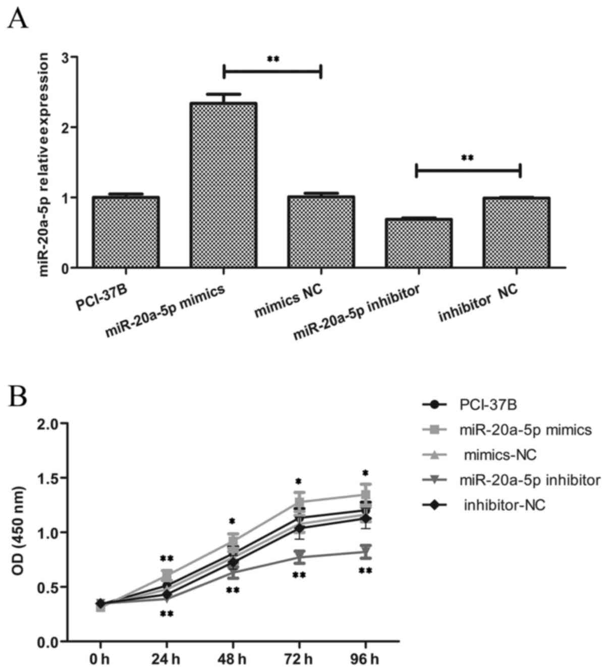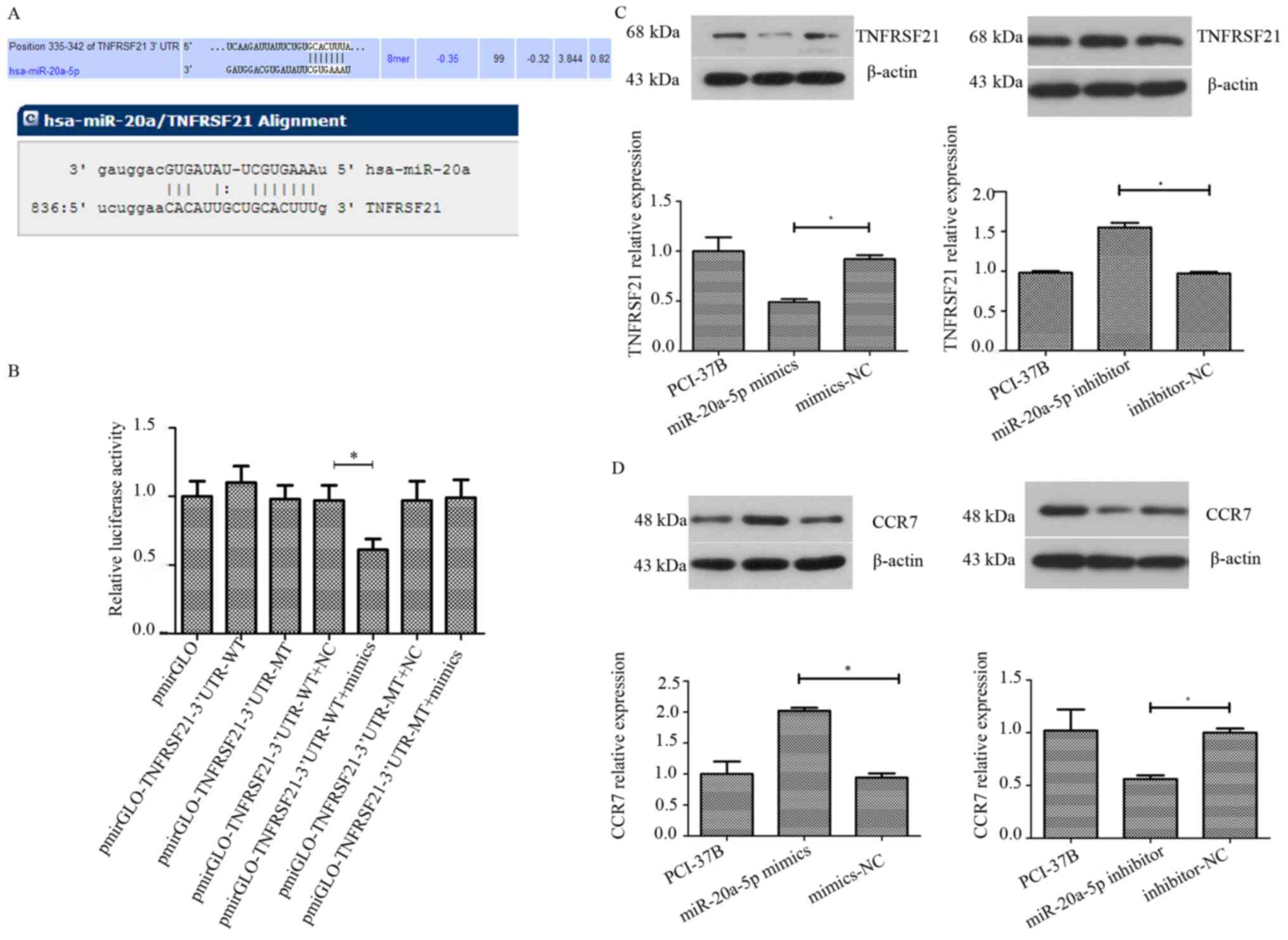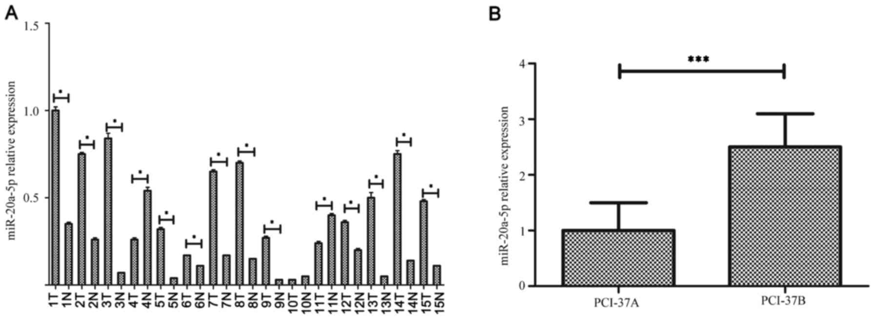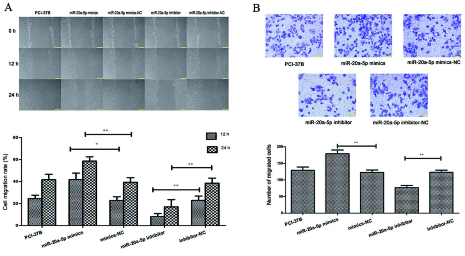 X and Tang H: miR-20a promotes migration and invasion by regulating