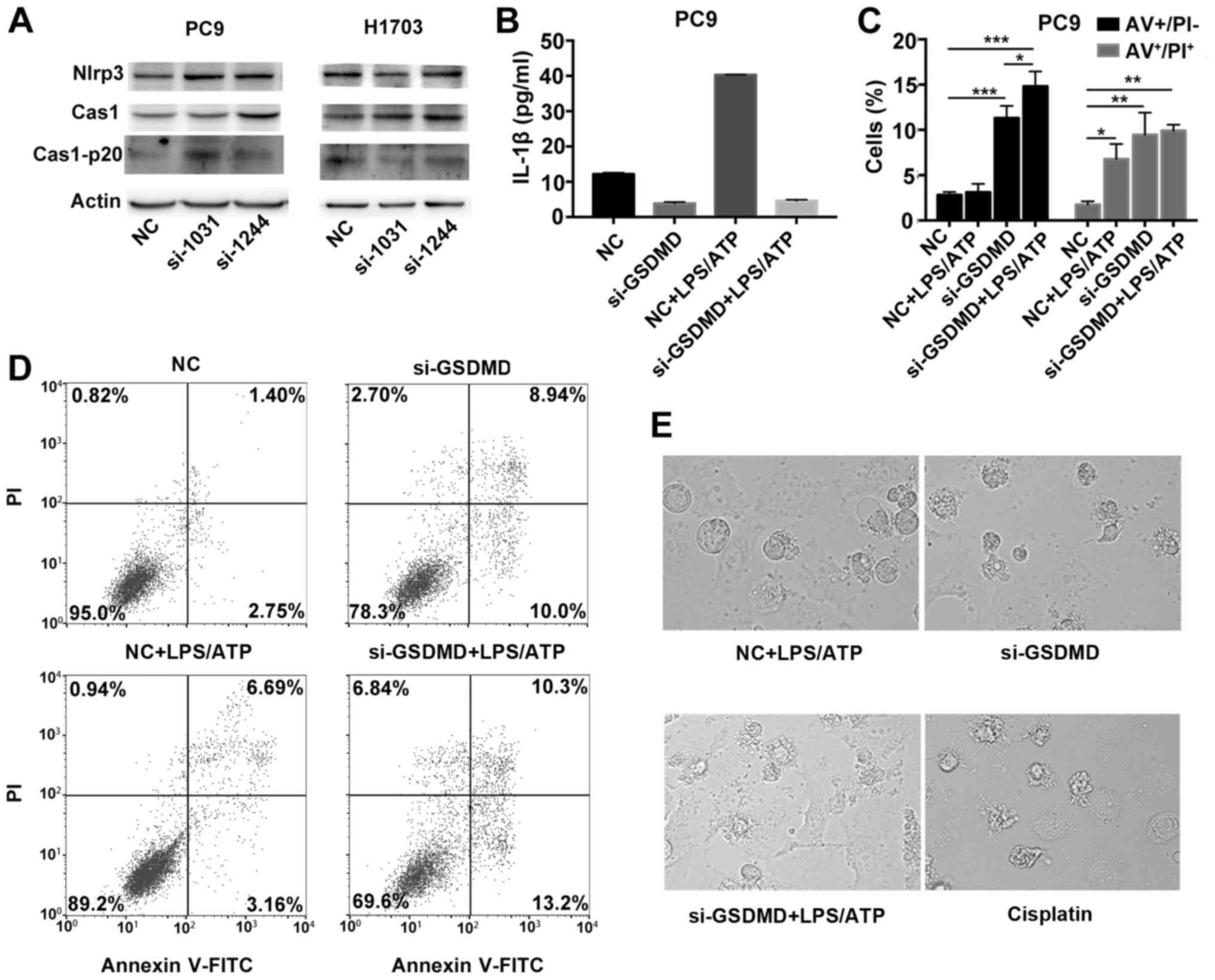 JM, et al: AIM2 and NLRP3 inflammasomes activate both apoptotic and