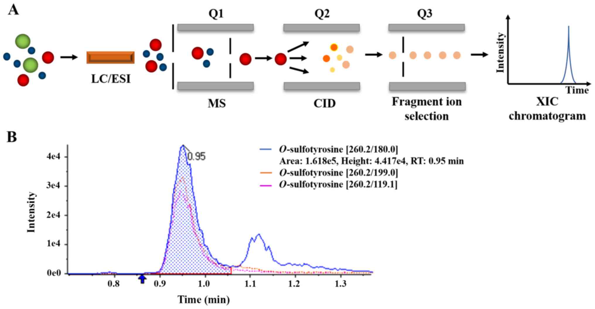 Dai D, Ruan Z, Han H, Zhu J and Zhang R: Relative quantitative analysis of human plasma <em>O</em>‑sulfotyrosine using HPLC‑MS/MS in linear negative ion mode. World Acad Sci J 3: 24, 2021.