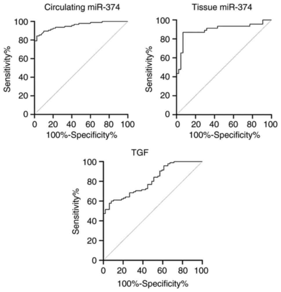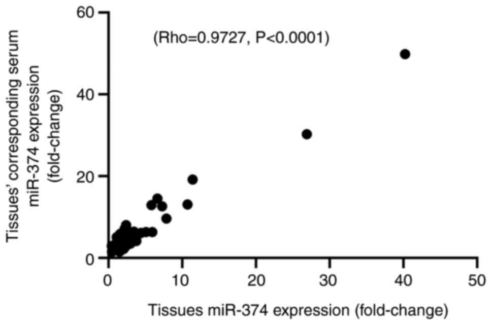 He W, Feng L, Xia D and Han N: MiR-374a