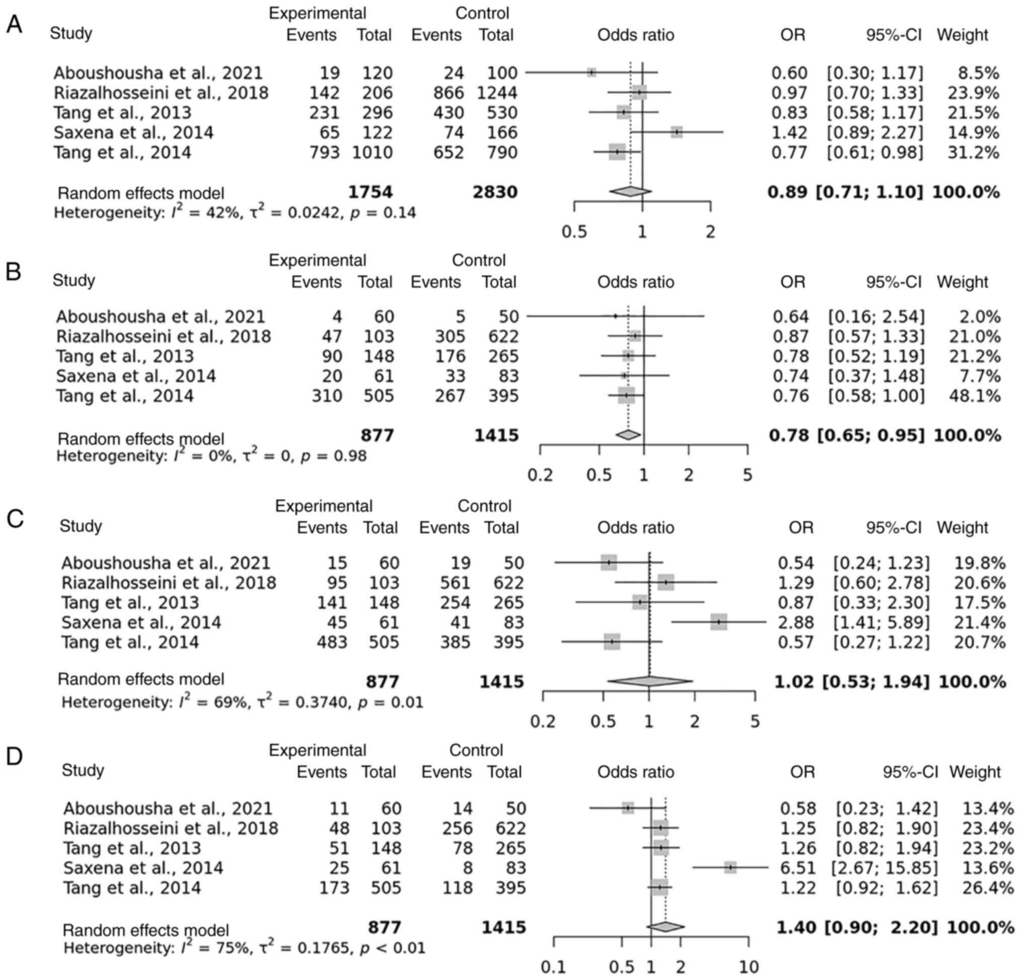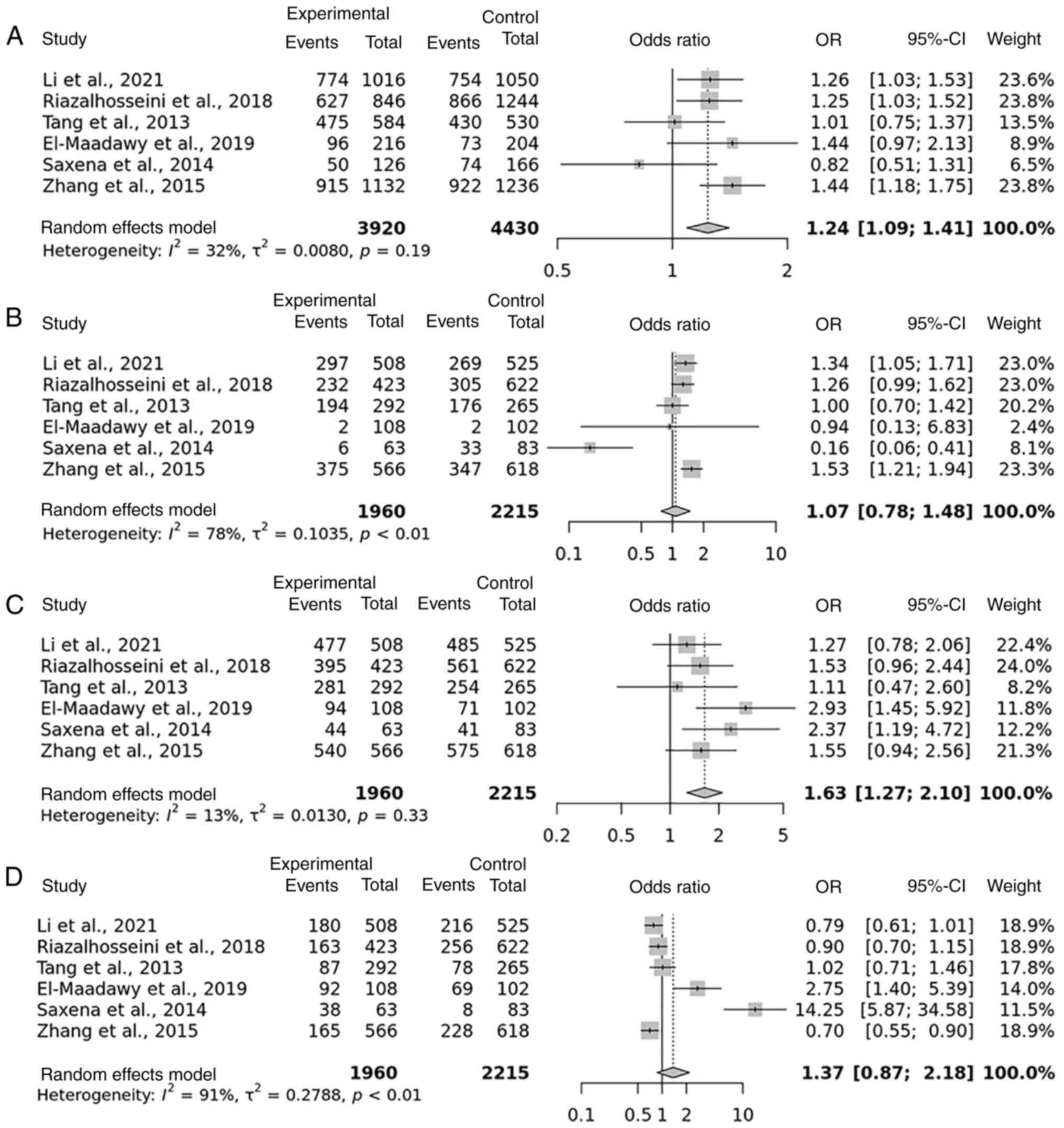 Wang L, Wang X and Gu D: Cumulative evidence for associations