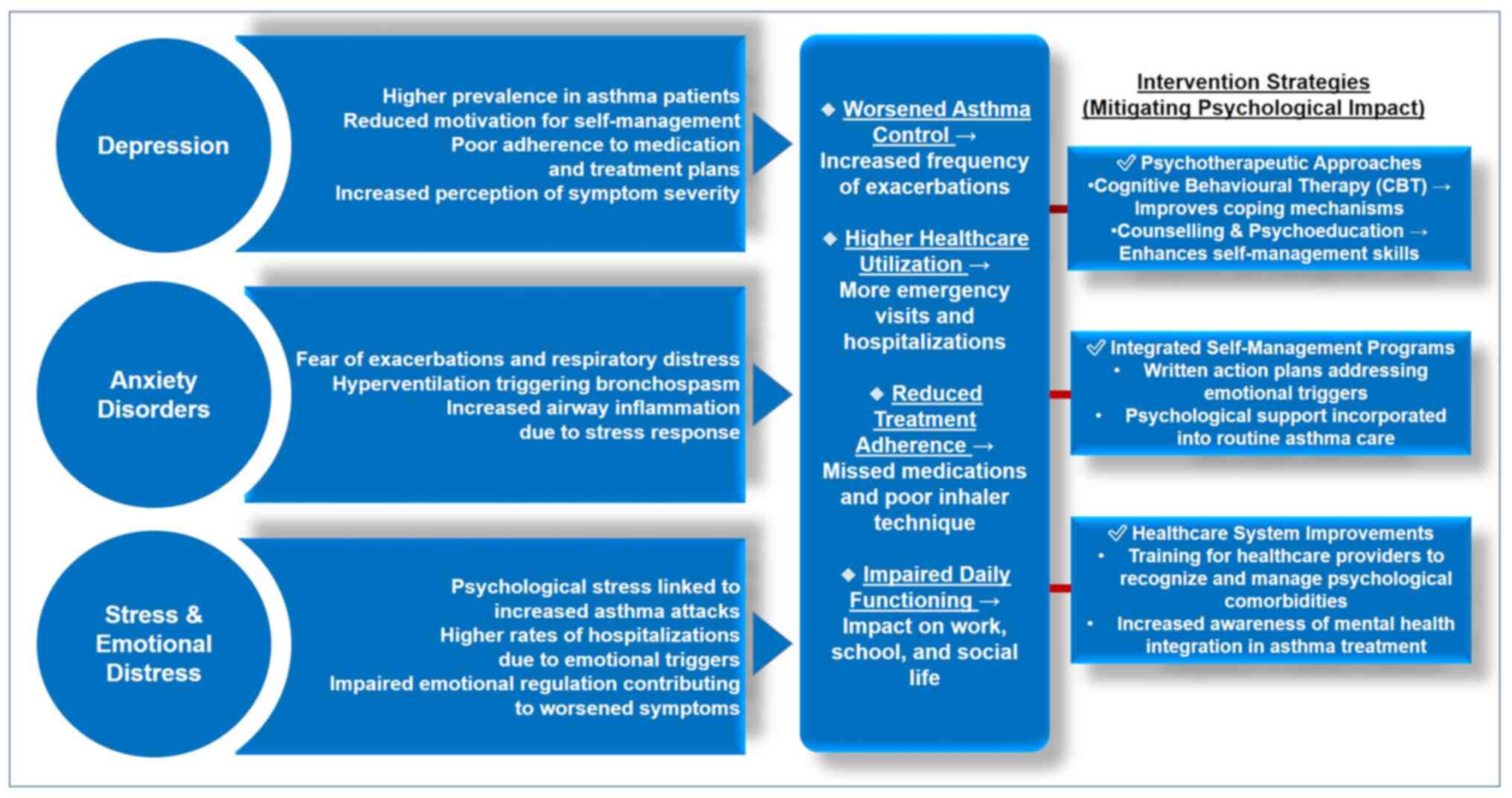 Sharrad KJ, Sanwo O, Cuevas-Asturias S, Kew KM, Carson-Chahhoud KV and Pike KC: Psychological interventions for asthma in children and adolescents. Cochrane Database Syst Rev. 1(CD013420)2024.PubMed/NCBI View Article : Google Scholar | |