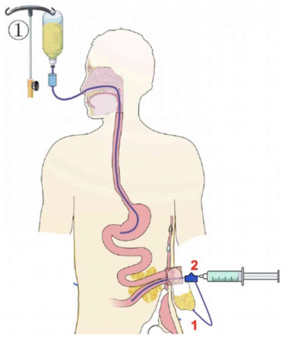 Teubner A, Morrison K, Ravishankar HR, Anderson ID, Scott NA and Carlson GL: Fistuloclysis can successfully replace parenteral feeding in the nutritional support of patients with enterocutaneous fistula. Br J Surg. 91:625–631. 2004.PubMed/NCBI View Article : Google Scholar