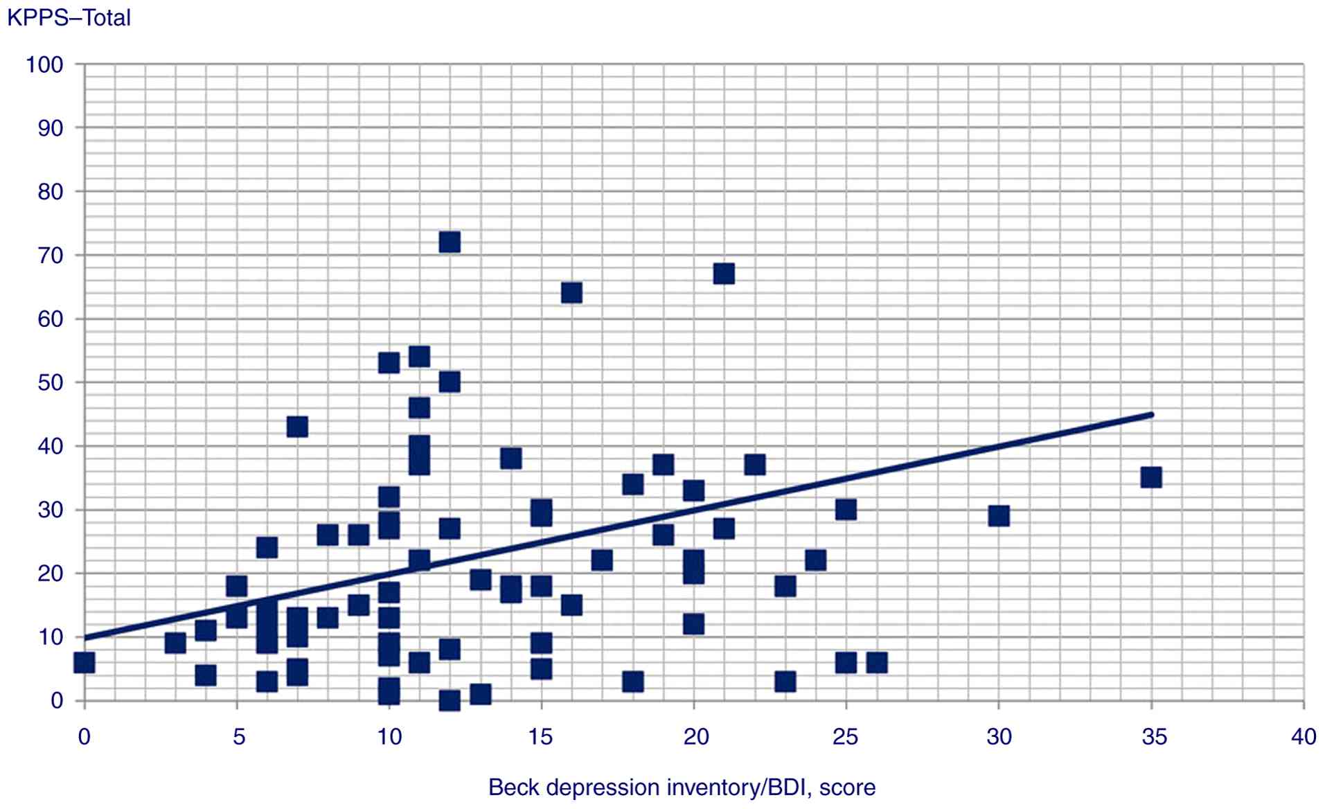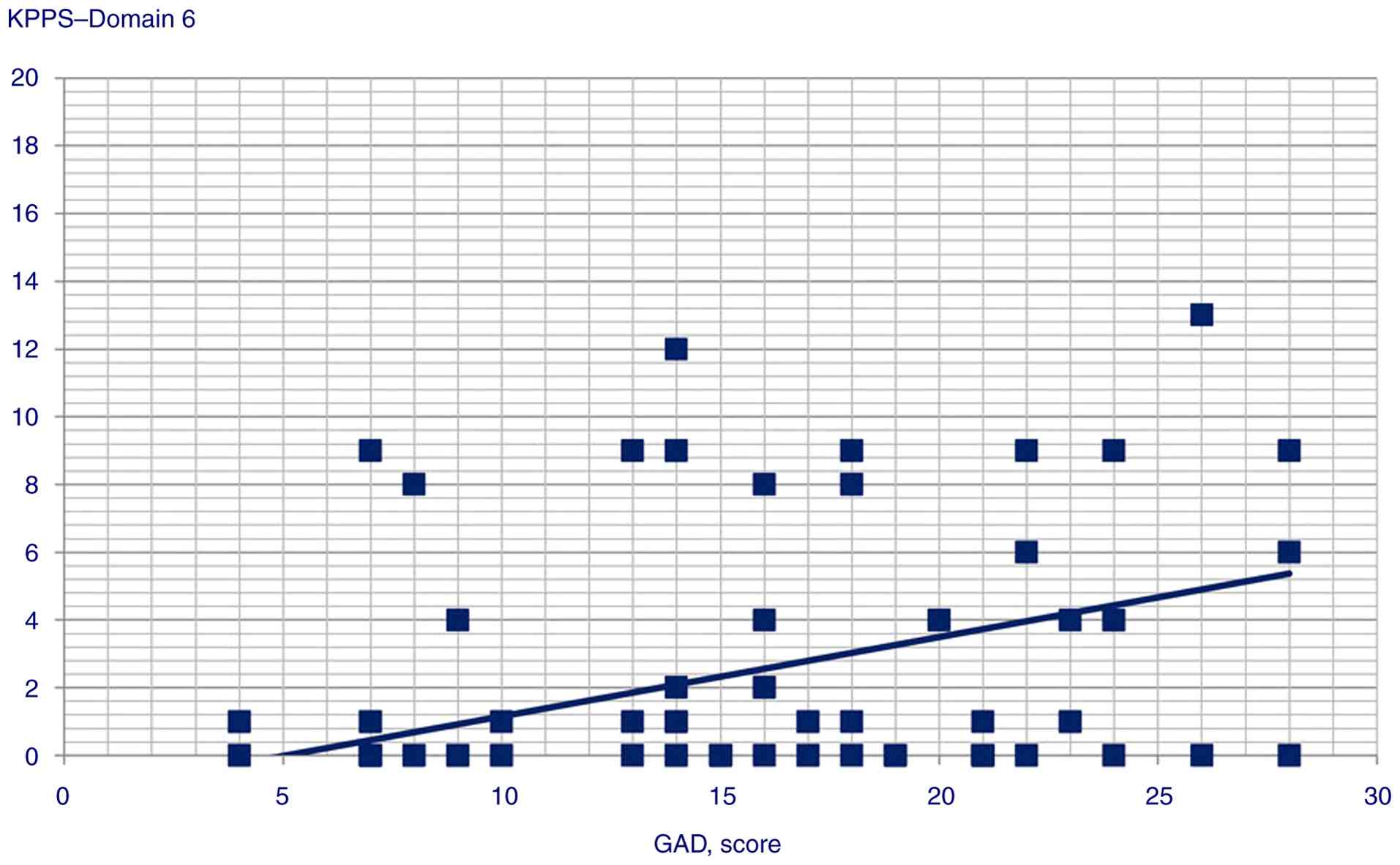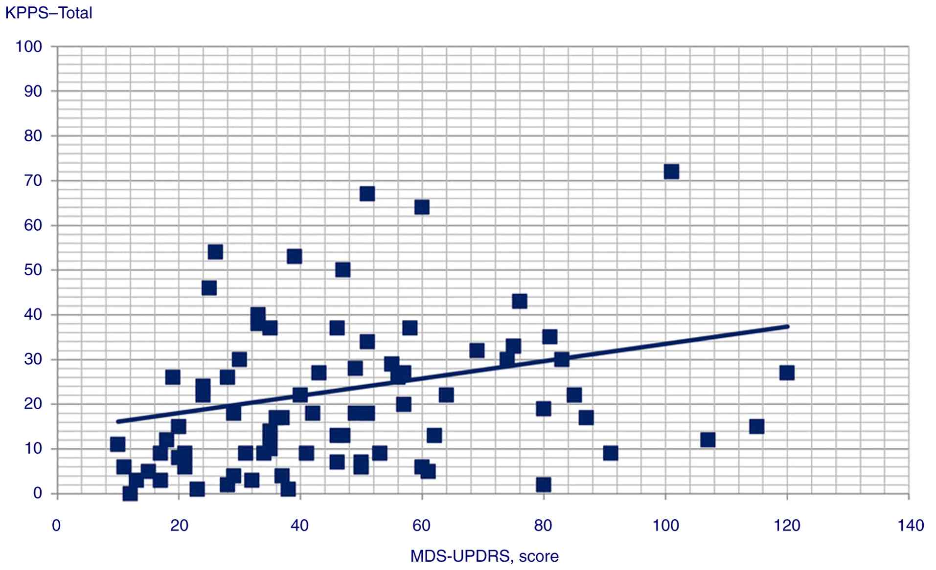 Table IIResults of correlation analysis for GAD score and KPPS, MDS-UPDRS score and KPPS and BDI and KPPS. |