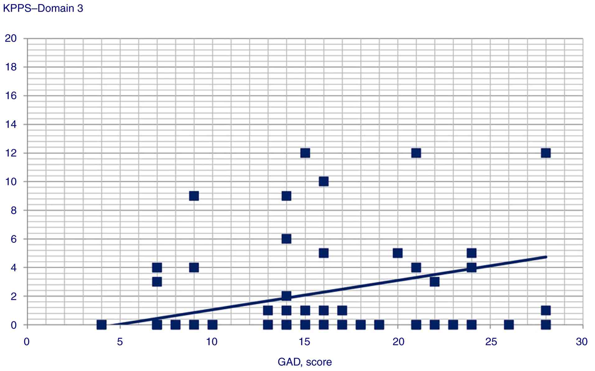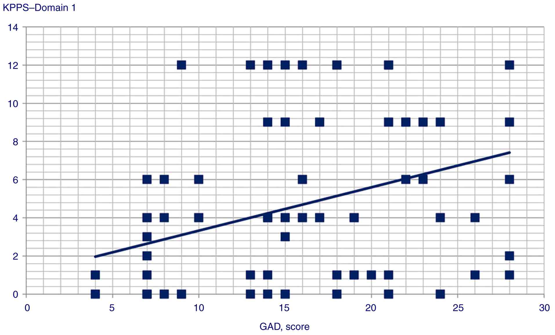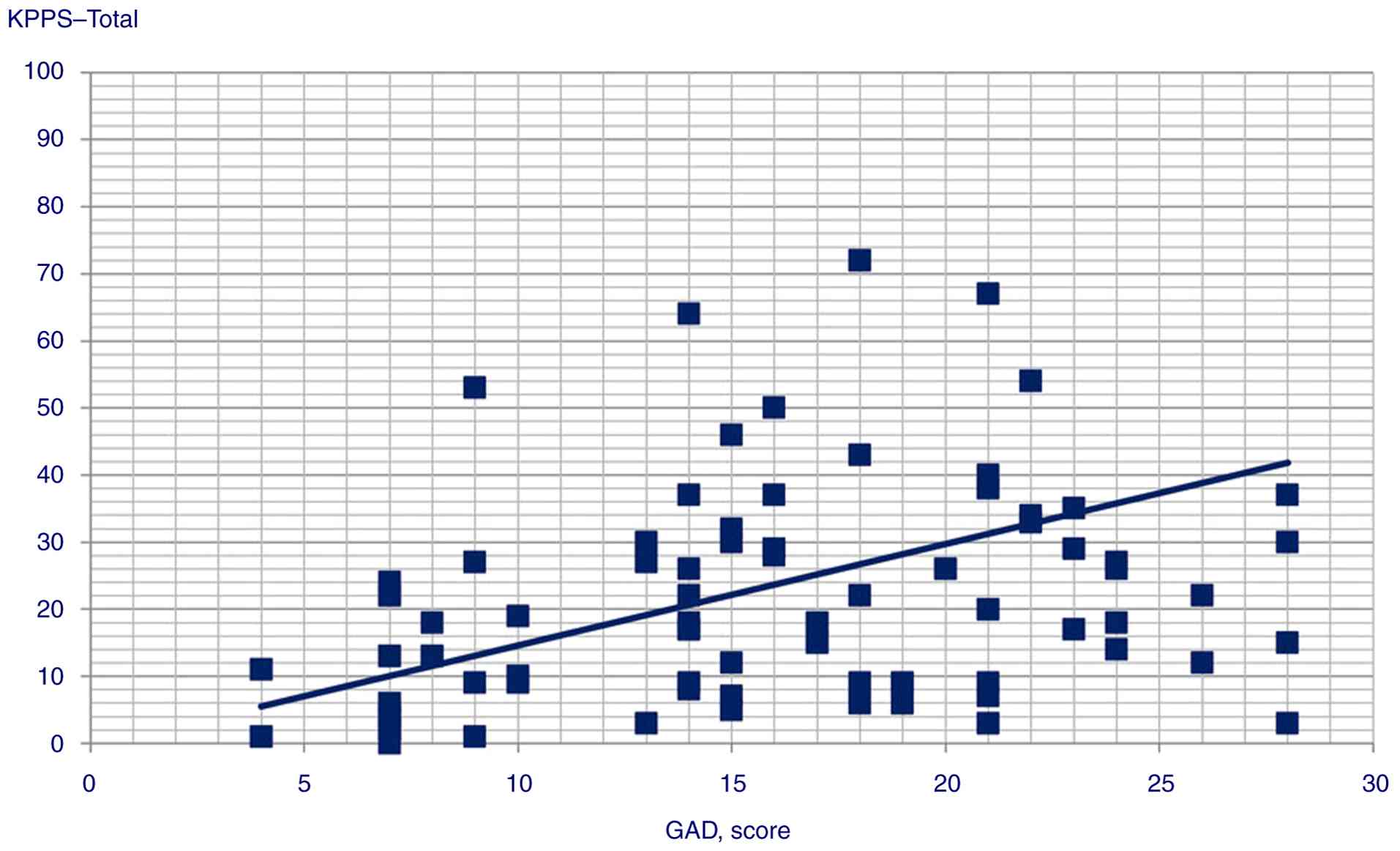 Table IIResults of correlation analysis for GAD score and KPPS, MDS-UPDRS score and KPPS and BDI and KPPS. |