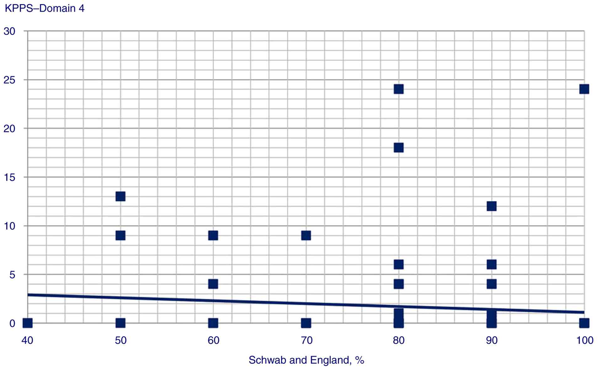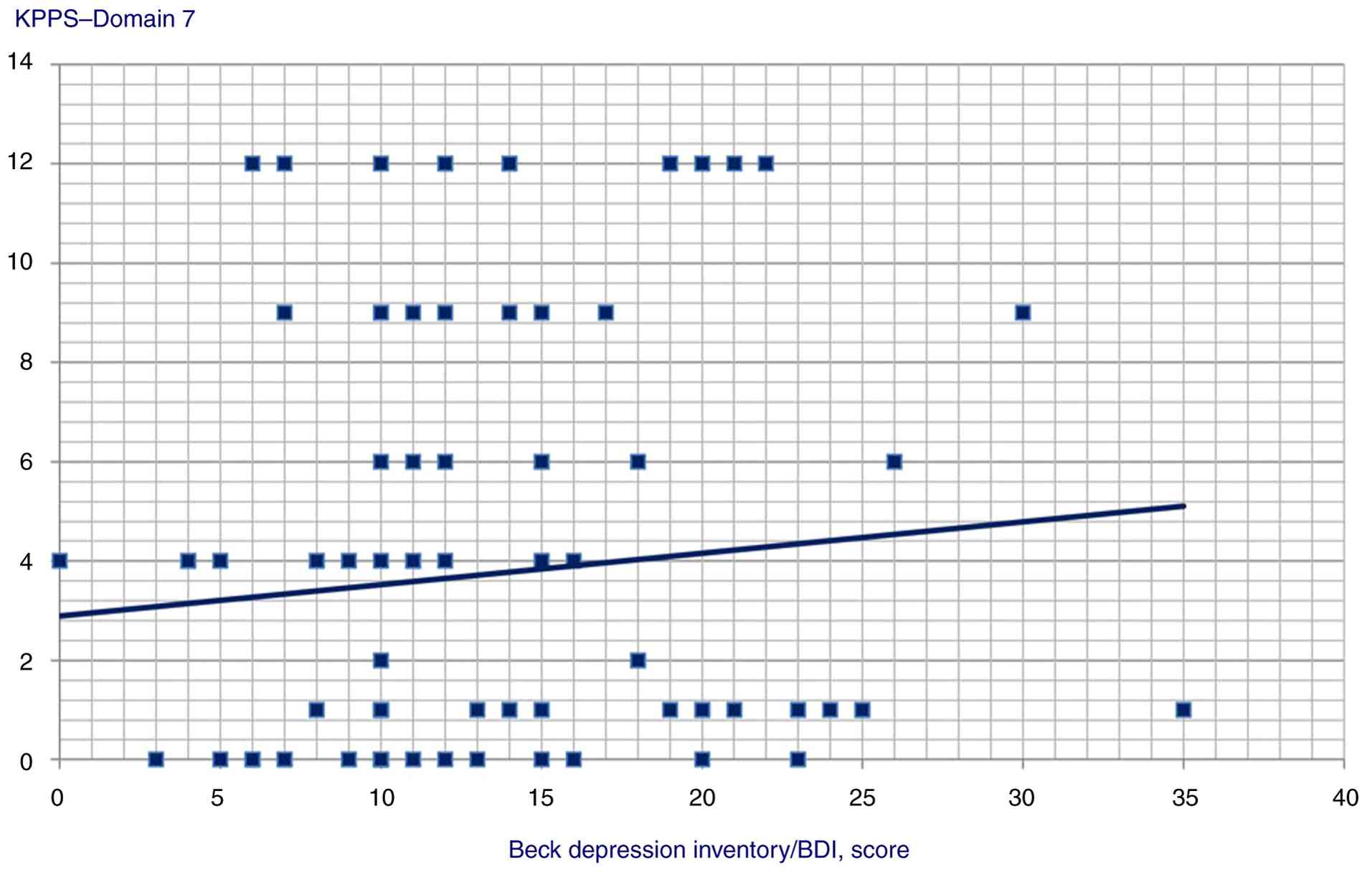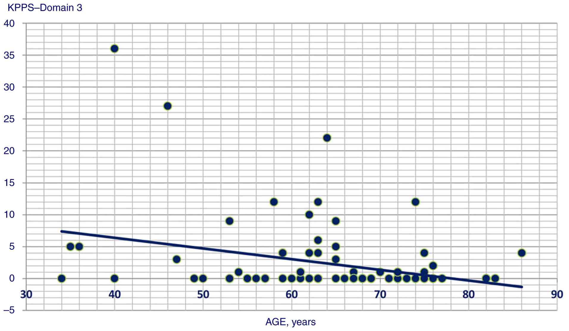 The correlation data between GAD score and KPPS, MDS-UPDRS score and KPPS, and BDI and KPPS are presented in Table II. No statistically significant correlations were found between the length of disease, MoCA score and KPPS total or individual domain scores. Statistically significant correlation scatterplots are presented in Fig. 1, 2, 3, 4, 5, 6, 7, 8, 9, 10, 11, 12, 13, 14, 15, 16 and 17.