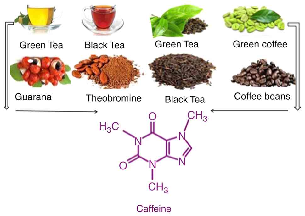 Other studies have demonstrated that caffeine causes the brain dopamine levels to rise, (109,110); additionally an excellent approach to raising dopamine levels is to drink coffee. It also increases dopamine receptors and improves dopamine signaling (111). Dopamine levels in the brain are increased by coffee and other stimulants. This may be due to the good taste of coffee. However, coffee and caffeine may interfere with sleep; thus, their consumption should be avoided in the evening and before bed. Finally, attempting to consume all the coffee fruit as opposed to simply coffee or pure caffeine may be beneficial. The coffee bean is traditionally removed from the coffee fruit to be roasted. The fruit that surrounds it is thrown away. However, this is problematic since the coffee fruit has several beneficial ingredients that are absent from coffee beans. Furthermore, using whole coffee fruit concentrate has been shown to considerably improve cognitive performance (112). It has also been demonstrated that tea raises dopamine levels in the brain. This includes black tea, as well as green tea (113). The amino acid threonine is present in both black and green tea. Additionally, it has been demonstrated that threonine crosses the blood-brain barrier and markedly increases dopamine release in the brain (114-116). Caffeine naturally occurs in plant leaves, seeds and fruits, substitute, where it acts as a natural herbicide, insect repellent and pollinator attractants Caffeine naturally occurs in plant leaves, seeds and fruits, (117,118). This botanically consequent chemical is the most widely used stimulant globally (119). Caffeine enters the human diet through plant-based foods (Fig. 10), such as coffee beans, tea leaves, guarana, cocoa beans, and kola nuts (120). Coffee is a key caffeine source in the diet (121).
