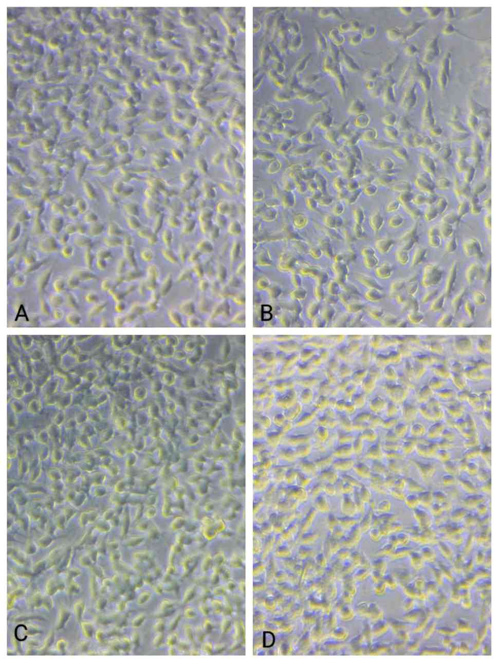 Mosmann T: Rapid colorimetric assay for cellular growth and survival: Application to proliferation and cytotoxicity assays. J Immunol Methods. 65:55–63. 1983.PubMed/NCBI View Article : Google Scholar | |