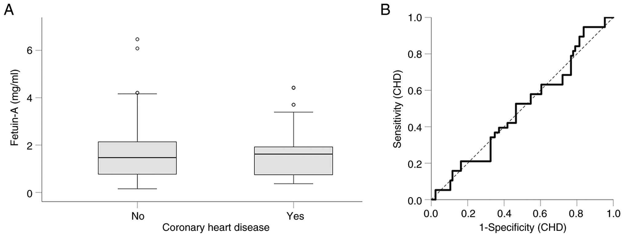In conclusion, the present study demonstrates that, in patients undergoing HD, fetuin-A levels are not associated with established CHD. Conversely, elevated dp-ucMGP levels indicate CHD-free patients, though its accuracy is moderate.