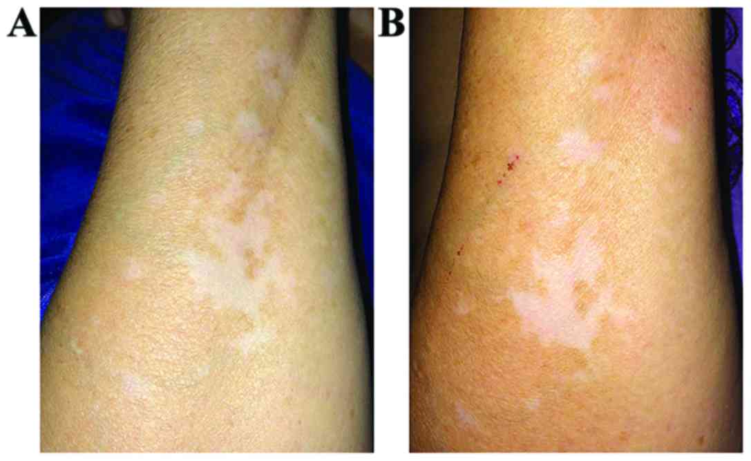 van Geel N, Bosma S, Boone B and Speeckaert R: Classification of segmental vitiligo on the trunk. Br J Dermatol. 170:322–327. 2014. View Article : Google Scholar : PubMed/NCBI | |