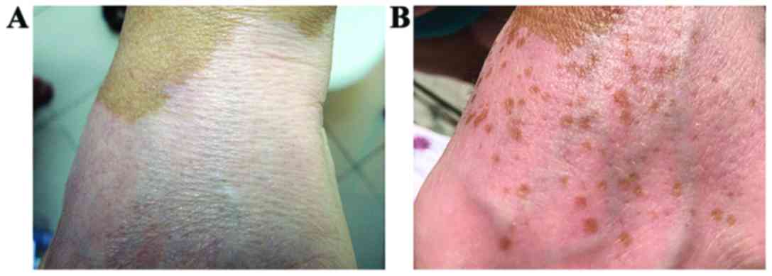 Taïeb A and Picardo M: Clinical practice. Vitiligo. N Engl J Med. 360:160–169. 2009. View Article : Google Scholar : PubMed/NCBI | |