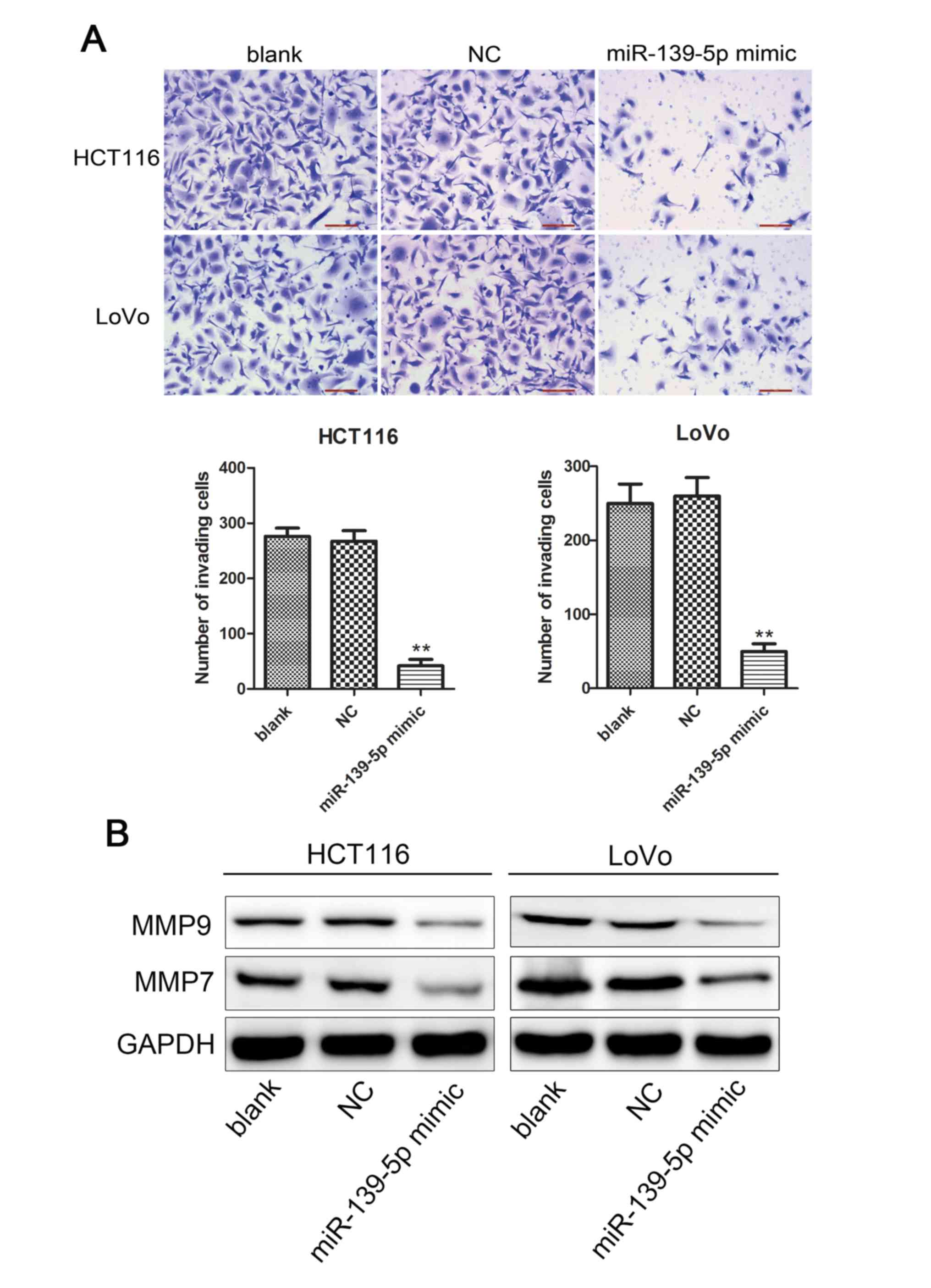 Song M, Yin Y, Zhang J, Zhang B, Bian Z, Quan C, Zhou L, Hu Y, Wang Q, Ni S, et al: MiR-139-5p inhibits migration and invasion of colorectal cancer by downregulating AMFR and NOTCH1. Protein Cell. 5:851–861. 2014. View Article : Google Scholar : PubMed/NCBI