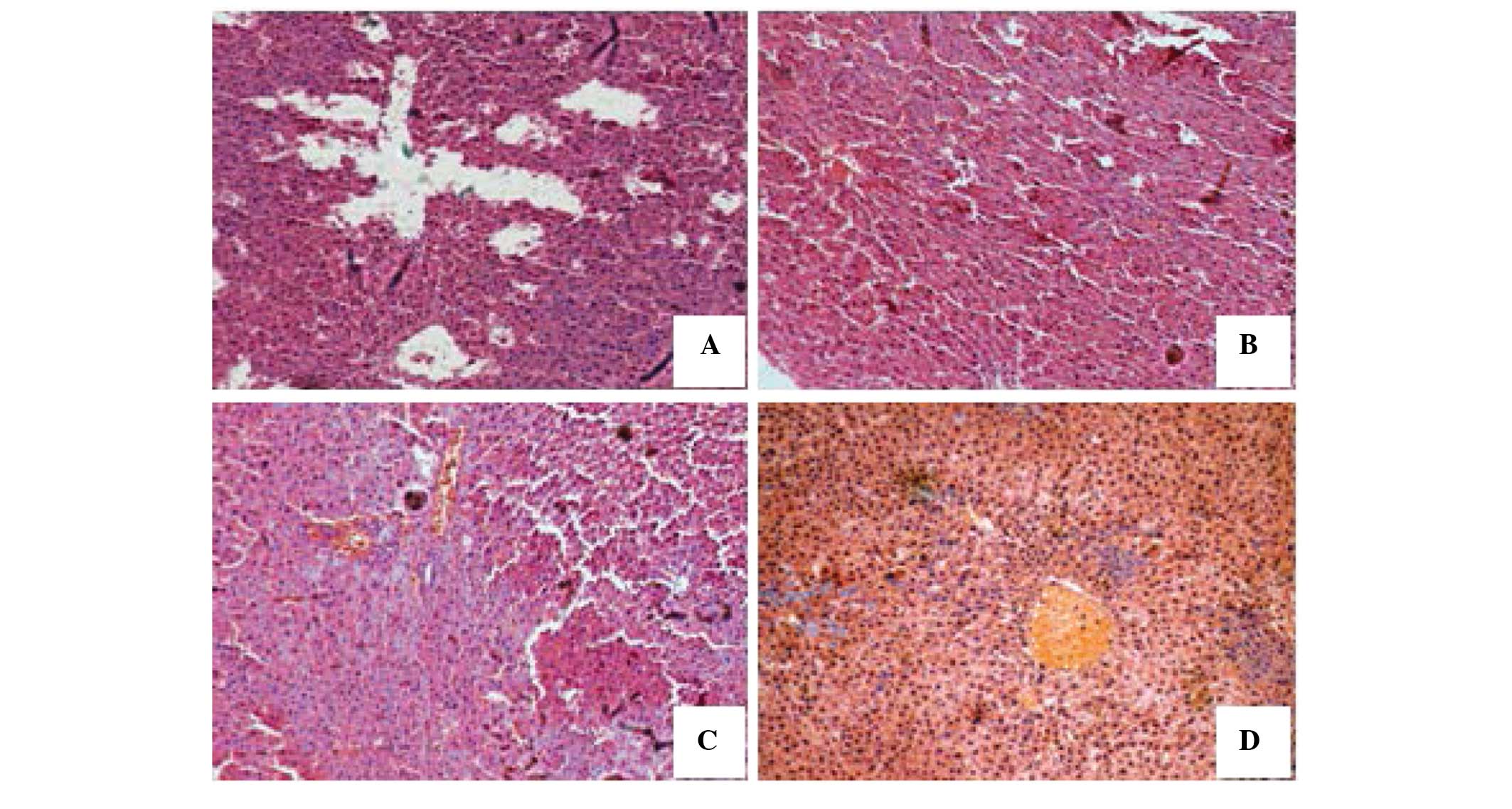Fixed livers were dehydrated and embedded in paraffin. Tissues were sectioned (4-µm thickness) and stained with H&E.