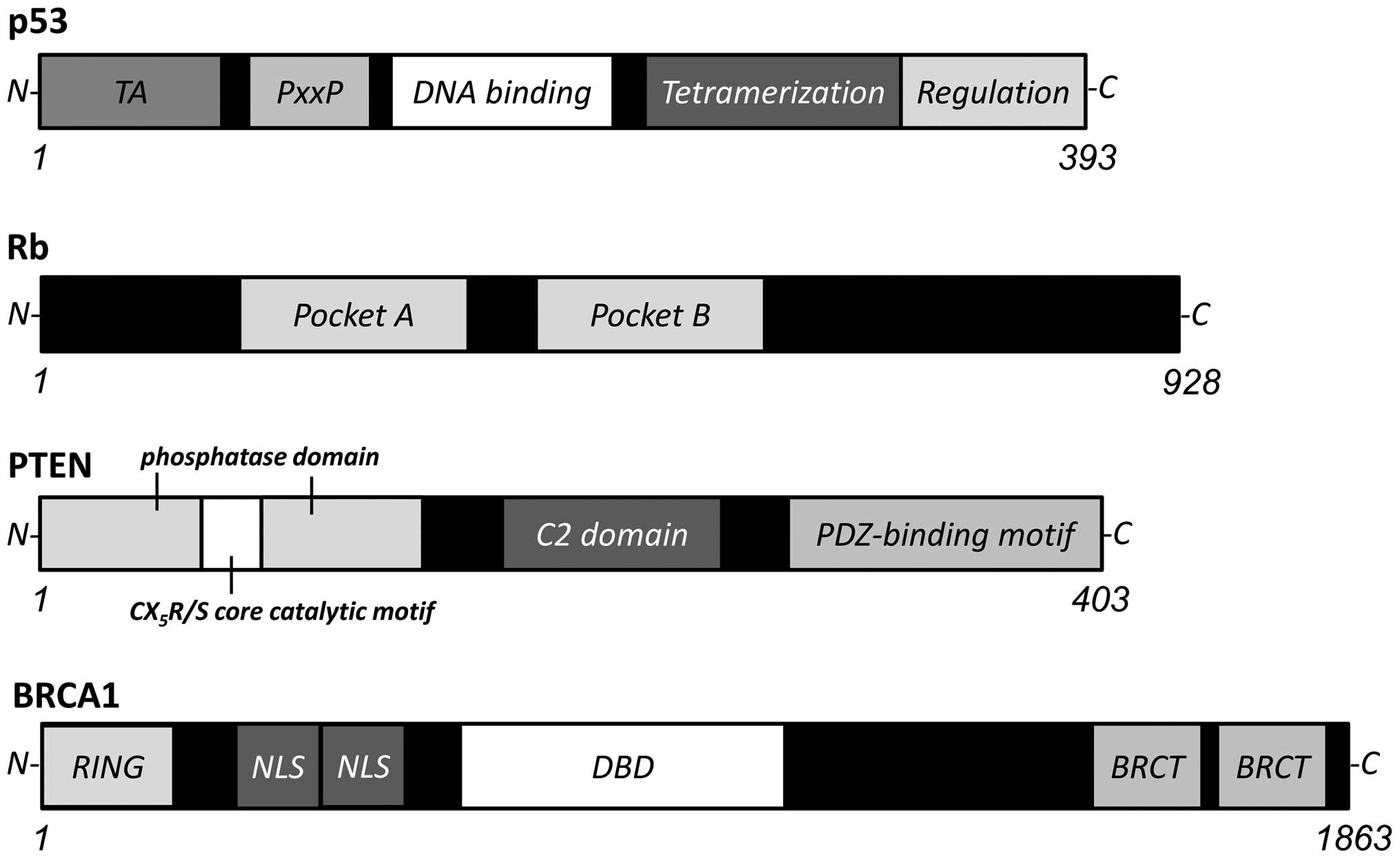 Again, cell proliferation and cell death are important processes in regulating macrophage and VSMC numbers in the atherosclerotic lesion, which may directly influence lesion stability. Atherosclerosis is initiated by the subendothelial accumulation of cholesterol-engorged macrophages (39). Atherosclerotic plaques contain β-Gal-positive vascular endothelial cells (VECs) and VSMCs exhibit the morphological features of senescence. It has also been reported that interleukin-1β (IL-1β) is expressed in senescent cells located in human atherosclerotic lesions, suggesting that senescent cells may promote inflammation in lesions (40). Tumor suppressor molecules regulate diverse cellular activities, including DNA damage repair, cell proliferation, cell differentiation, cell migration, cellular senescence and programmed cell death (Fig. 1). An important tumor suppressor is the p53 tumor suppressor. Other examples of tumor suppressors, include Rb, PTEN, p21WAF1, p27KIP1 and BRCA1 (Fig. 2) (18). Various cell proliferation- and apoptosis-signal transduction pathways are built on complex networks between oncogenes and tumor suppressor genes, such as p53 and its downstream factors. For example, the tumor suppressor p53 regulates the expression of various genes and plays an important role in cell proliferation and in the modulation of signal transduction pathways (41). The accumulation of p53 in cells following DNA damage leads to cell cycle arrest and the induction of apoptosis. In addition, p53 is involved in the repair of damaged DNA and thus prevents the accumulation of mutations and suppresses tumor development (42). There are two types of p53 genes, the wild-type p53 gene and the mutant p53 gene (43). Oncogenic p53 mutations usually confer the mutant protein with a dominant-negative activity over the remaining wild-type gene. Many mutant p53 forms acquire dominant-negative activities, and sometimes gain oncogenic properties (43). These activities of p53 are also regulated by post-translational modification (44). The phosphorylation and acetylation state, subcellular localization and interaction with other cellular proteins are likely to influence the function of p53 (45). In cells facing oxidative stress and DNA-damage, p53 dissociates from its ubiquitin ligase mouse double minute 2 homolog (MDM2) (46), through various post-translational modifications which promote its stabilization.