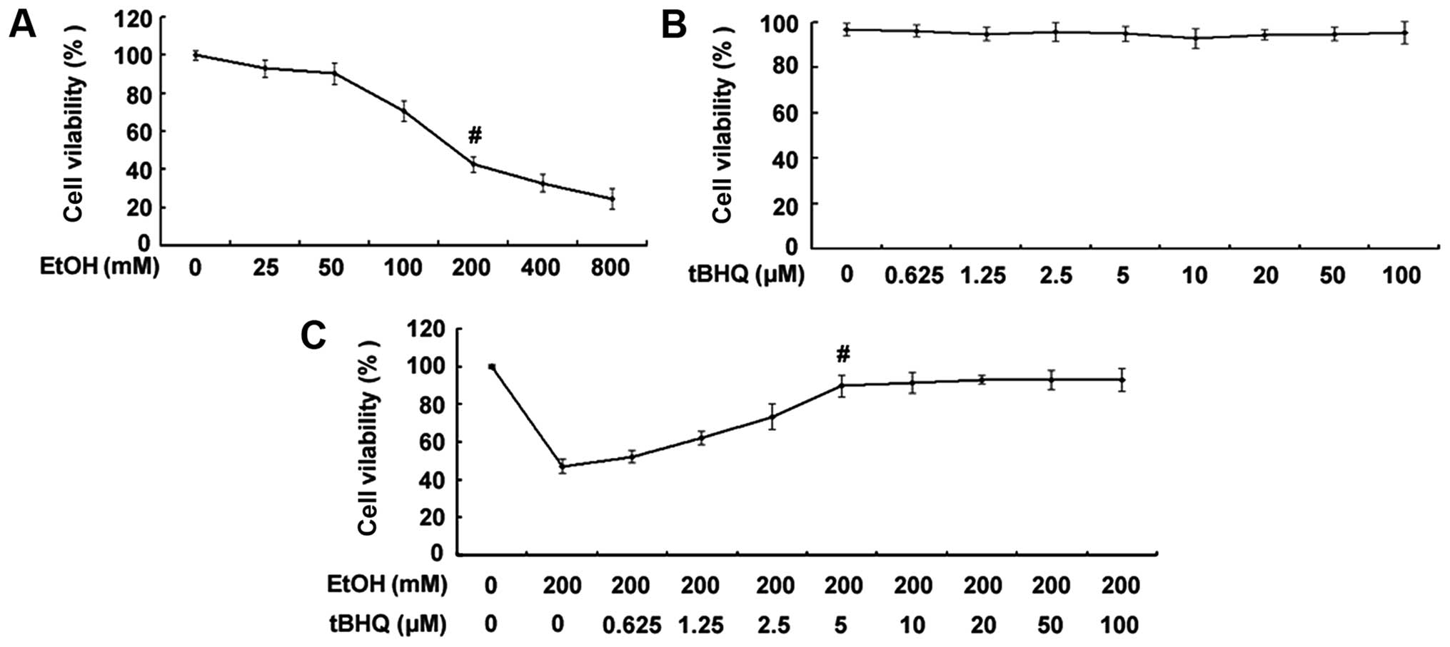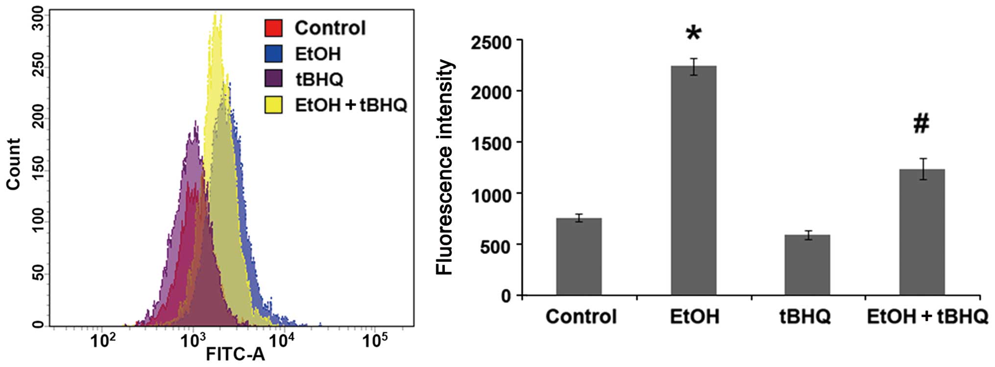 This study aimed to examine the effects of tBHQ on ethanol-induced oxidative stress and the apoptosis of a cultured H9c2 cell line, a cloned heart muscle cell line originating from embryonic rat hearts that presents many cardiomyocyte phenotypes.
