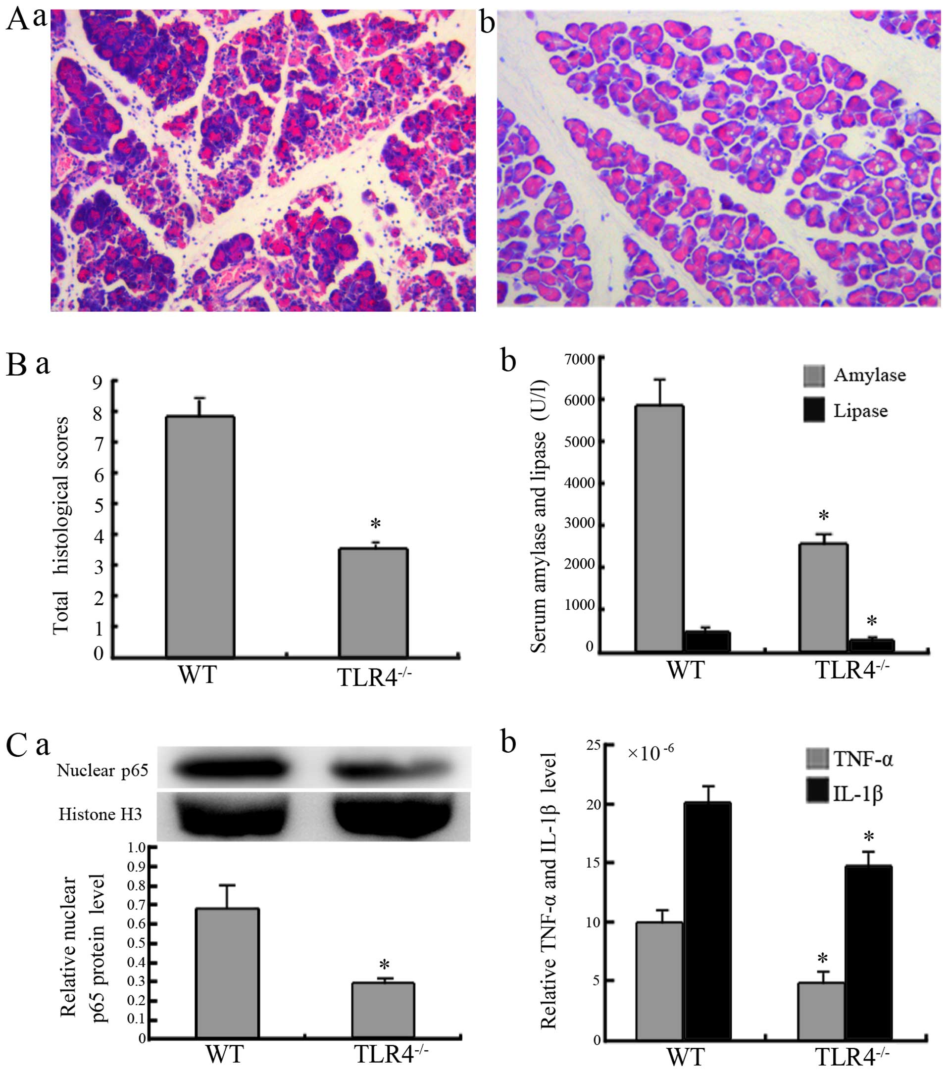 Following the publication of the article, the authors noted that there were certain errors in Fig. 5. In particular, the published Fig. 5A-a contains an image of H&E-stained micrographs from wild-type mice after the administration of a low dose of rhH-MGB1, and not after the administration of a high dose of rhH-MGB1, as should be shown. In addition, the data in the published graph of Fig. 5C-a is not correct and in Fig. 5C-b, the significance marker is merged with the error bars and is not evident. Shown below is the new version of Fig. 5 with the correct images: