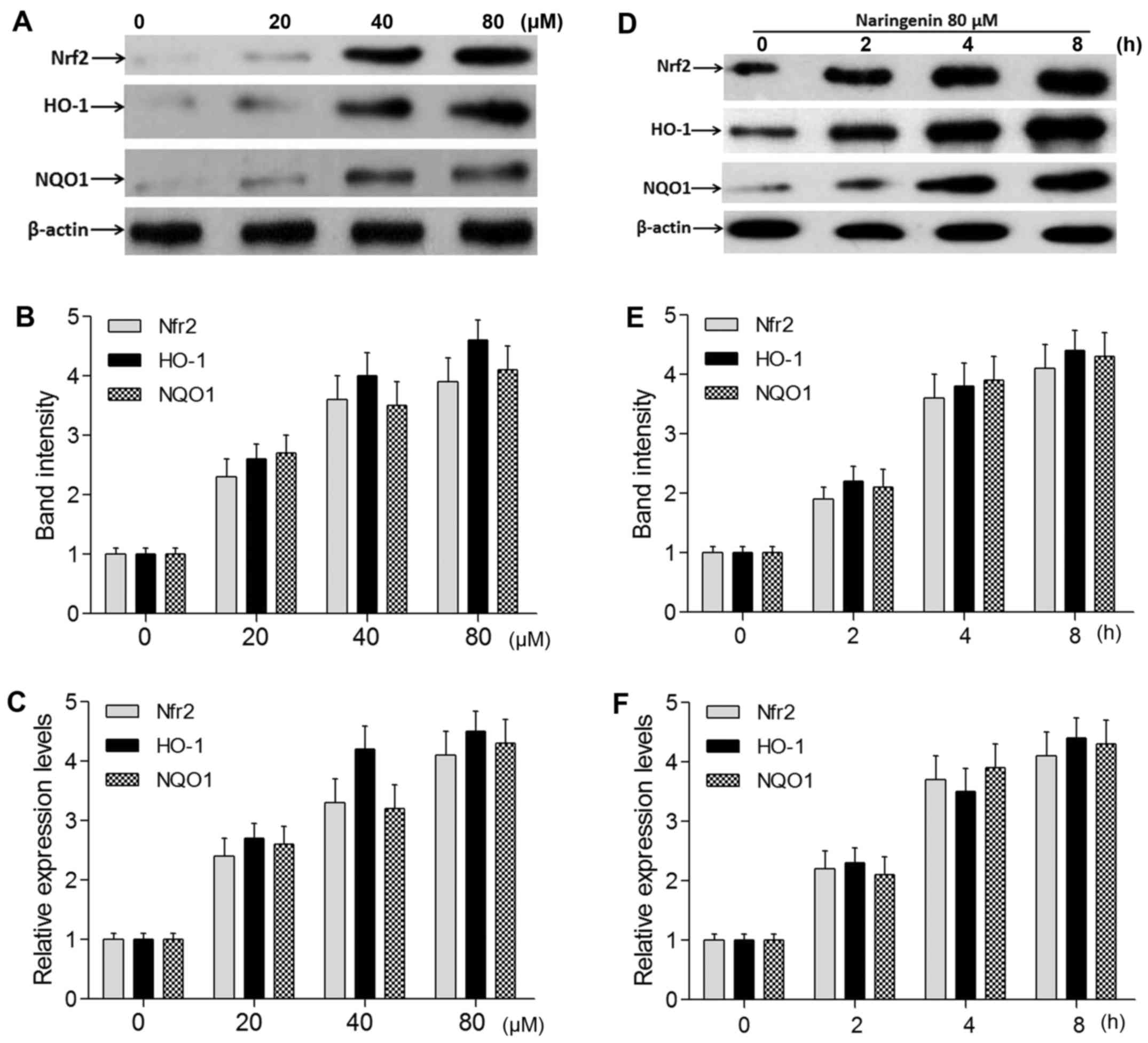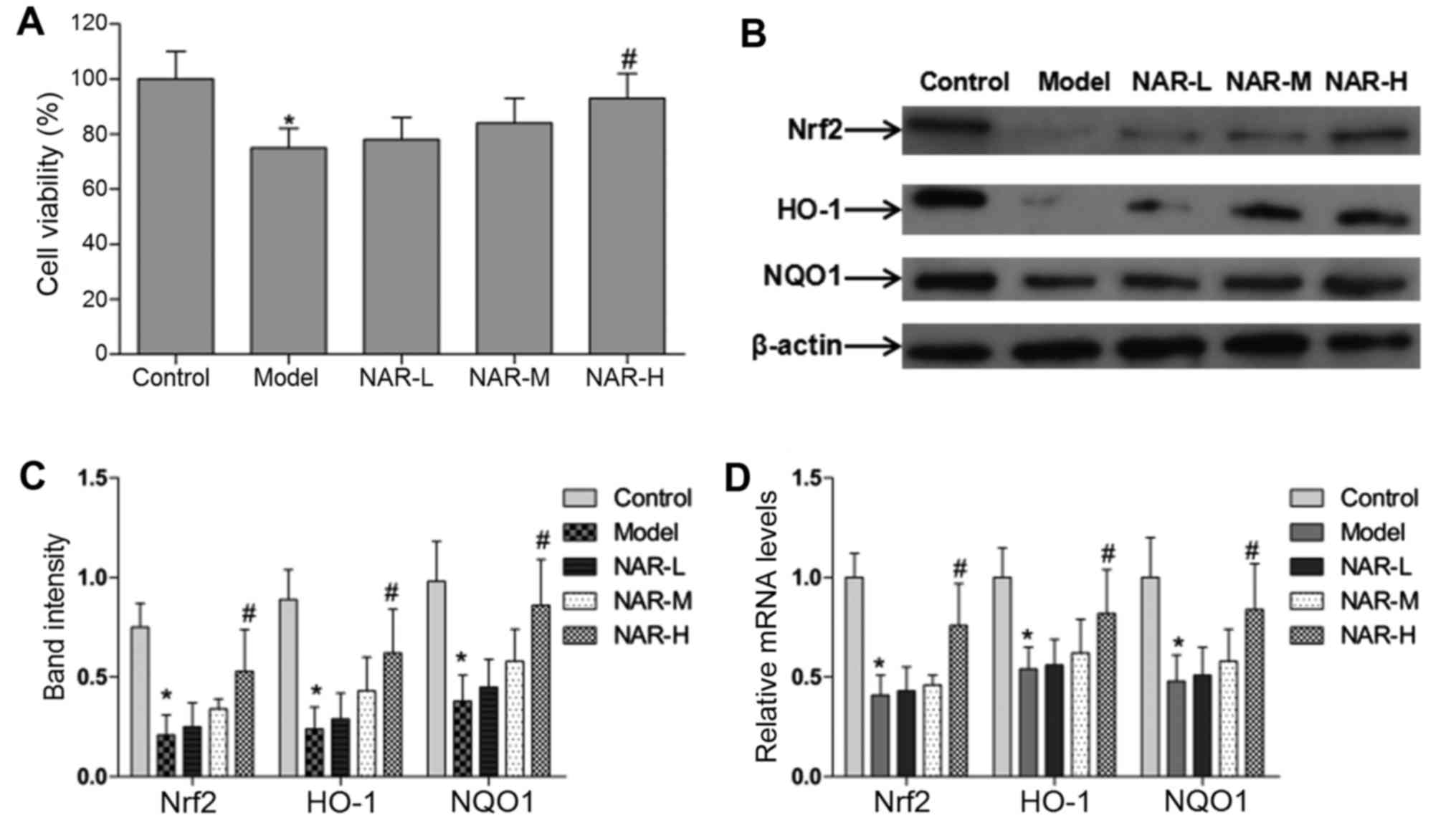 Taken together, these data suggested that NAR could activate the Nrf2/ARE signaling pathway and regulate the gene expression of Nrf2 and its downstream targets.