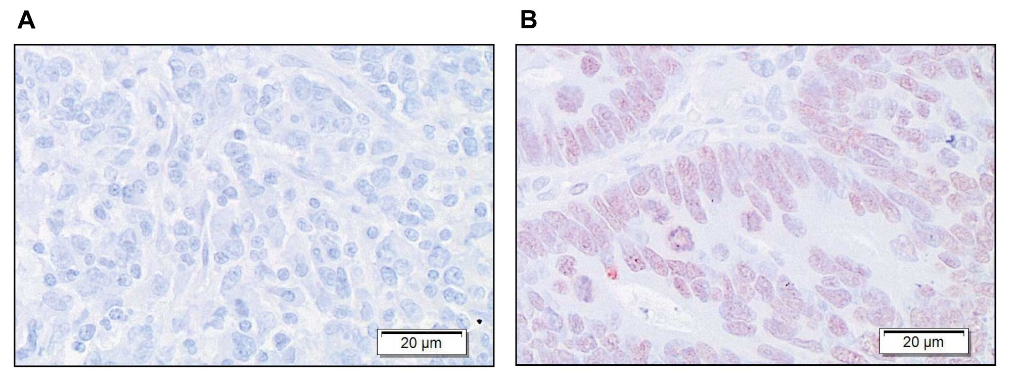 Given the cell death-regulating properties of HMGB1 we were interested in investigating the expression of HMGB1 in human CRC tissue samples and in correlating them with clinical data. Therefore, we examined the expression of HMGB1 immunohistochemically in a collection of 47 CRC samples, comprising CRC of pT stage 3 (n=44) or pT stage 4 (n=3), but differing in regard to their grade of malignancy (G2, moderately differentiated; G3/4, poorly differentiated) and the presence of lymph node metastasis (pN0, no lymph node metastasis; pN1+, with lymph node metastasis). Of 47 CRC samples, 26 showed absence or low levels of nuclear HMGB1 expression (Fig. 4A). Of these 26 cases, 21 carcinomas were poorly differentiated (G3/4) and/or exhibited lymph node metastasis (pN1+) and/or showed blood vessel invasion (V1). In contrast, only 6 of 21 CRC with retained endogenous HMGB1 expression (Fig. 4B) showed these features of advanced, aggressive carcinomas (G3/4, pN1+, V1), whereas the majority (n=15) of CRCs exhibited moderate differentiation (G2) and lack of lymph node metastasis (pN0) (sensitivity, 77.7%; specificity, 75%; positive predictive value, 81.48%; χ2 test: t=12.95; p<0.005, power >0.95). These data suggest that loss of HMGB1 expression is associated with a more aggressive phenotype and advanced (metastasized) disease in patients with CRC.