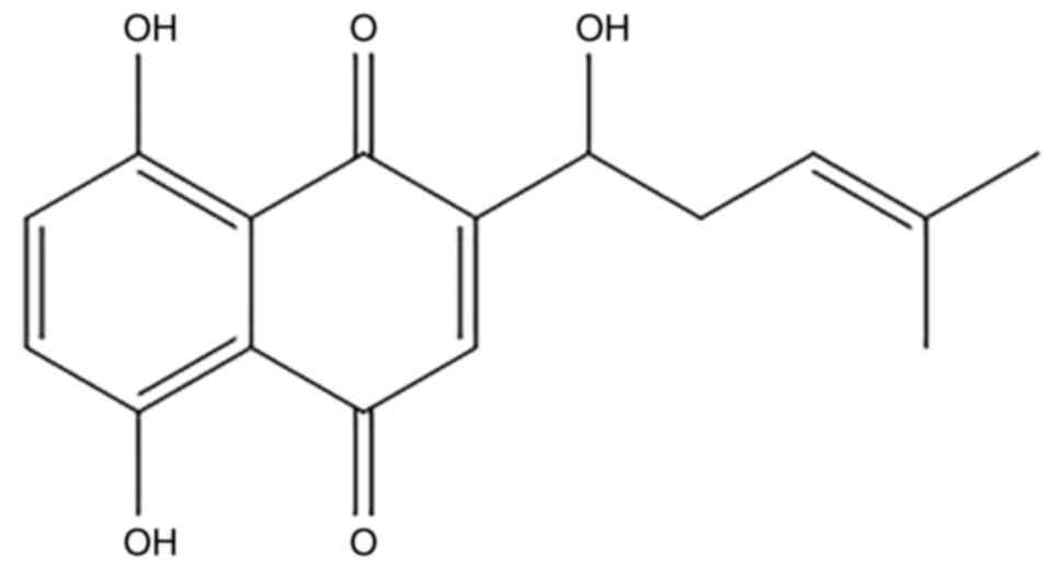 Wang F, Yao X, Zhang Y and Tang J: Synthesis, biological function and evaluation of Shikonin in cancer therapy. Fitoterapia. 134:329–339. 2019. View Article : Google Scholar : PubMed/NCBI | |