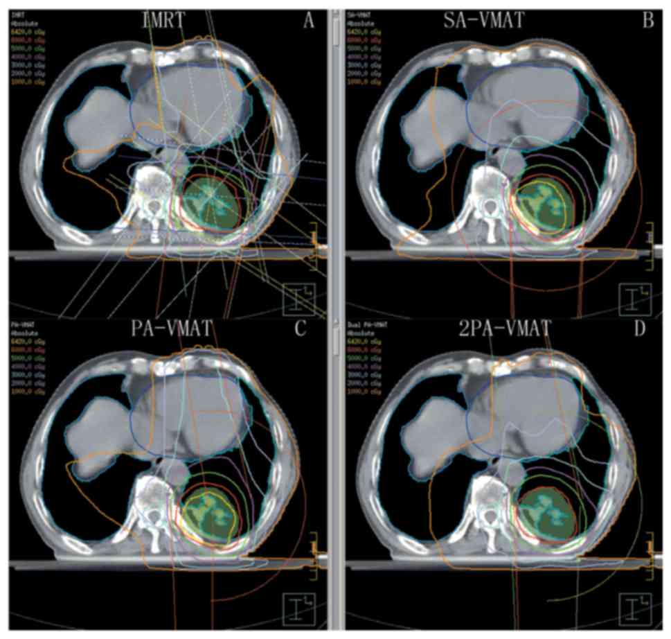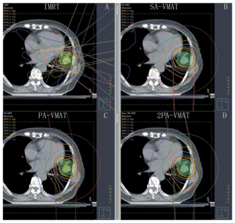 Jiang X, Li T, Liu Y, Zhou L, Xu Y, Zhou X and Gong Y: Planning analysis for locally advanced lung cancer: Dosimetric and efficiency comparisons between intensity-modulated radiotherapy (IMRT), single-arc/partial-arc volumetric modulated arc therapy (SA/PA-VMAT). Radiat Oncol. 6:1402011. View Article : Google Scholar : PubMed/NCBI | |