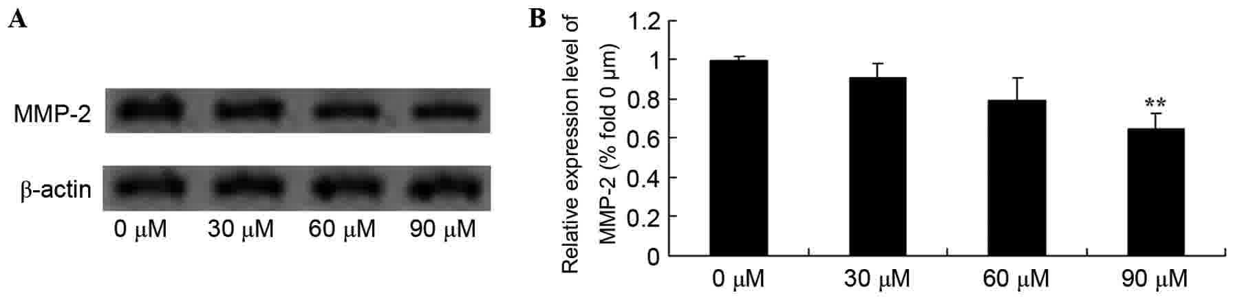 Hrabec E, Strek M, Nowak D, Greger J, Suwalski M and Hrabec Z: Activity of type IV collagenases (MMP-2 and MMP-9) in primary pulmonary carcinomas: A quantitative analysis. J Cancer Res Clin Oncol. 128:197–204. 2002. View Article : Google Scholar : PubMed/NCBI