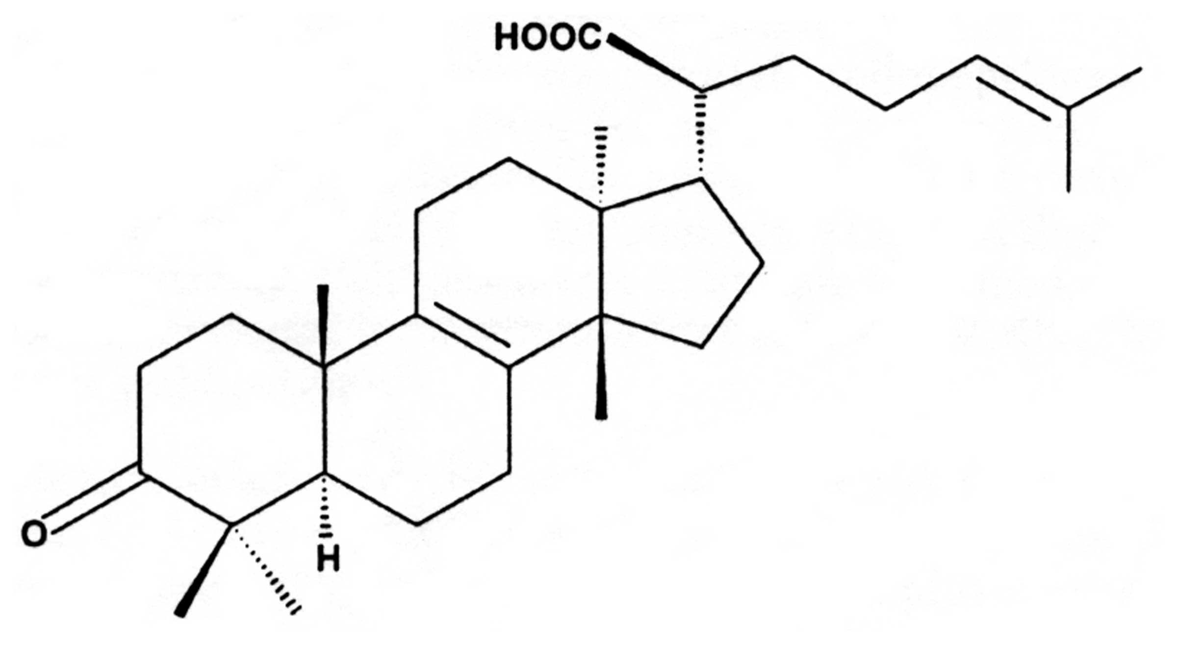 β-elemonic acid (13α,14β,17α,20S,-3-Oxolanosta-8, 24-dien-21-oic acid) is a known triterpene that has not yet been used in therapy or investigated for its pharmaceutical effects (21). Few studies have demonstrated the anti-inflammatory activities of β-elemonic acid (22). Despite extensive analysis of the antitumor activities of β-elemonic acid, its ability to modulate lung cancer growth has not been effectively characterized. In the present investigation, we studied the quantitative and qualitative changes of several known effectors in the β-elemonic acid-induced apoptotic process in human NSCLC A549 cells.